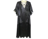 Antique 1920s Art Deco Black Silk Satin Flapper Dress Beaded Bolero M Gatsby
