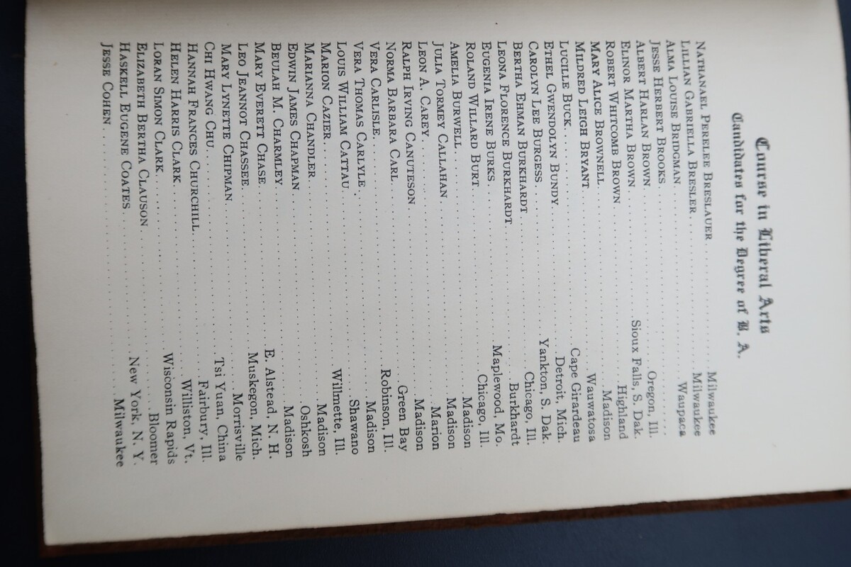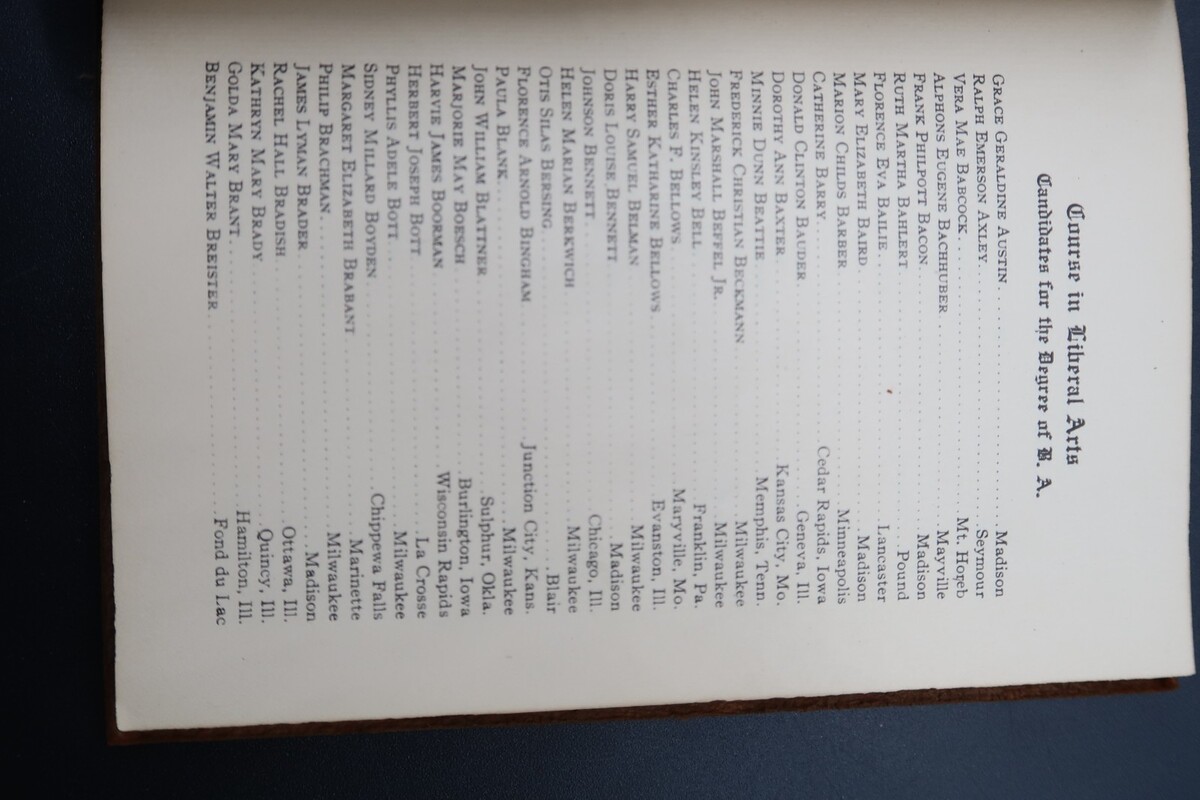 - Antique 1923 University of Wisconsin Graduation Program Soft Brown Leather Cover