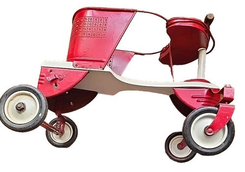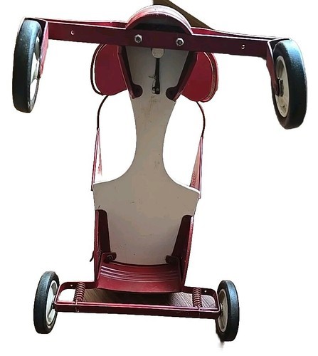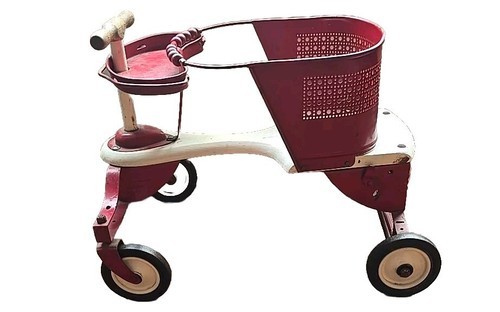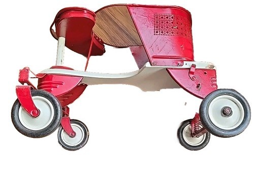 Antique 1950's ~ TAYLOR TOT ~ Metal & Wood ~ Baby Walker ~ Red White Child Buggy