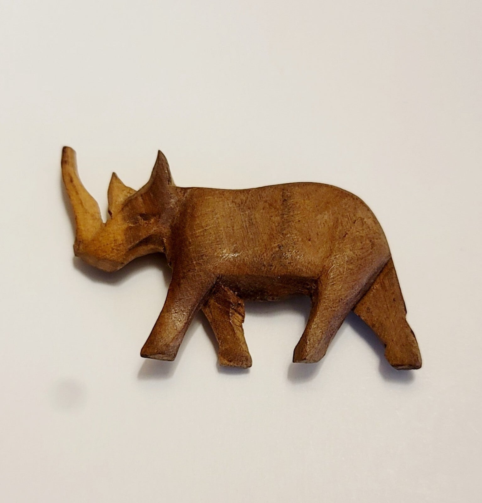 - Antique African Hand Carved Wood Rhino 2" Figurine