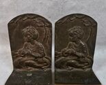 Antique Bookends Bronze Art Deco Young Girl Vtg Tabletop Bookshelf Sculpture Set