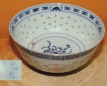 - Antique Bowl 4.5" Rice Grain red sunrise Pattern Doucai Qing jade trinket mark