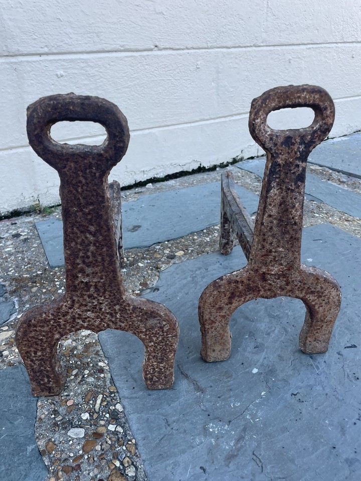 - Antique Cast Iron Andirons Natural Patina Rustic