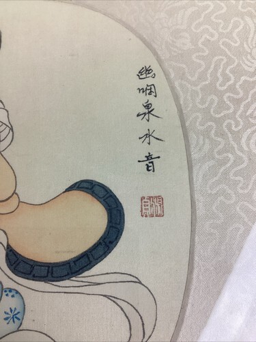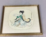 - Antique Chinese Watercolor Painting On Silk - Girl Playing Instrument