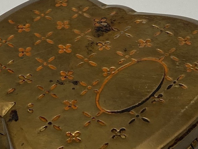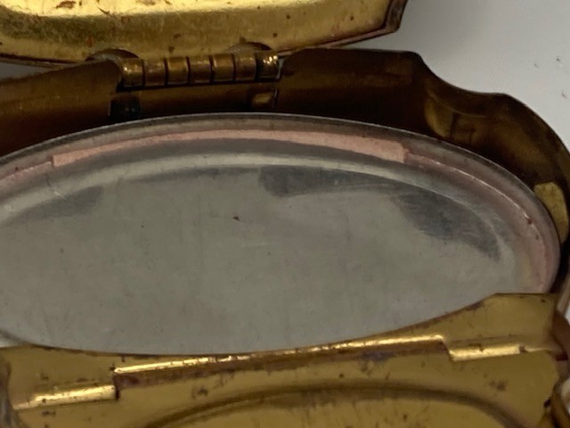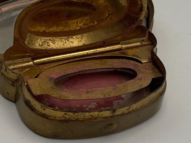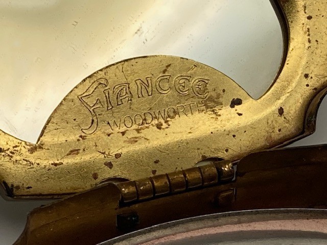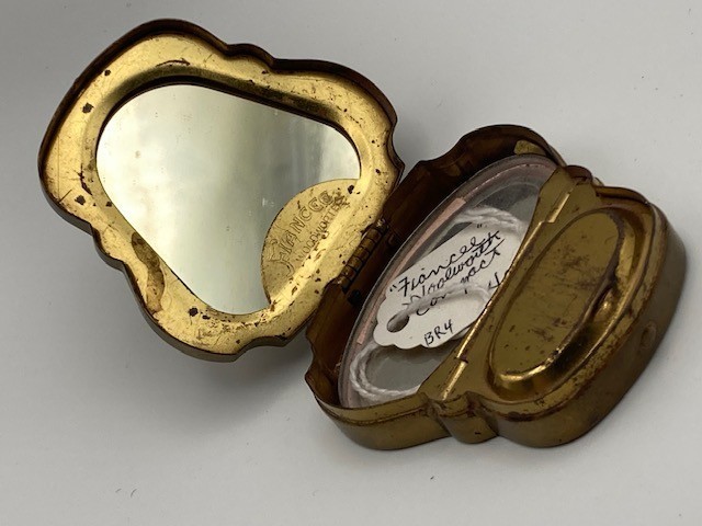 Antique Compact Woodworth Fiancee New York Unique Shape Purse Size Ladies Makeup Condition as shown. Some tarnish in areas per images. Please refer to images.