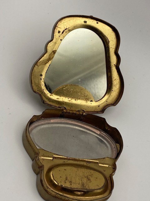 - Antique Compact Woodworth Fiancee New York Unique Shape Purse Size Ladies Makeup
