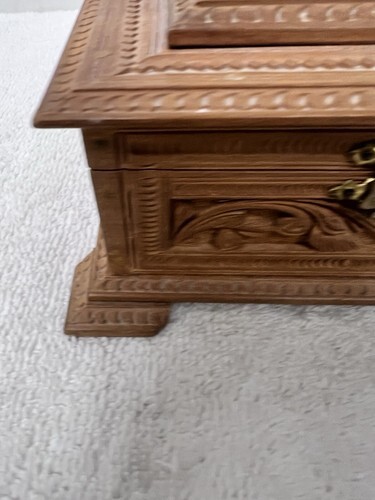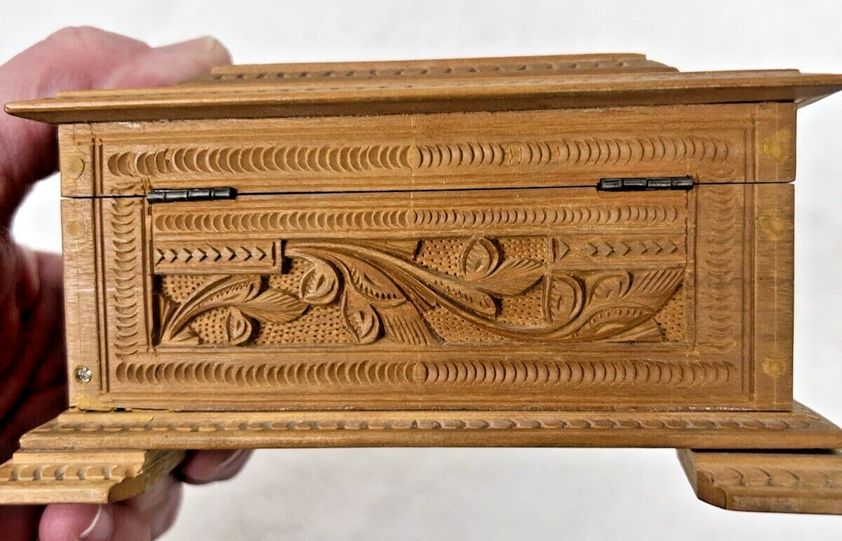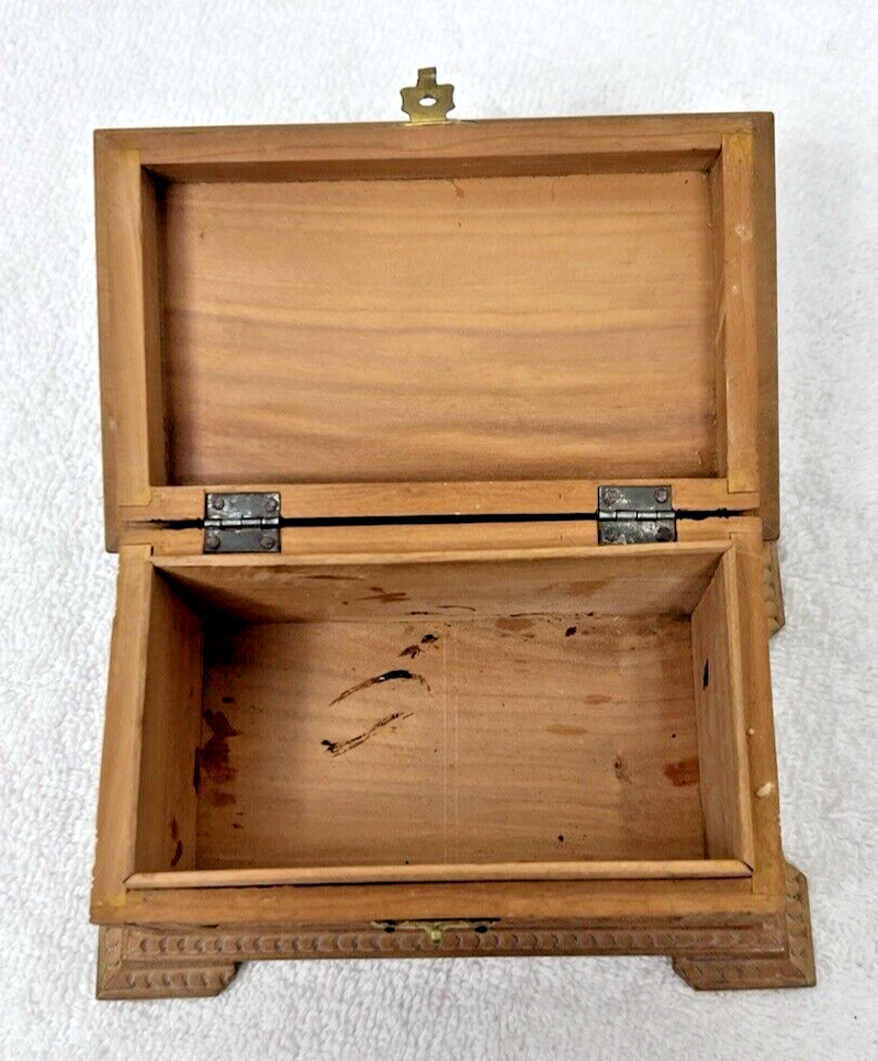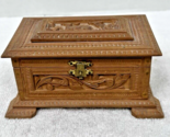- Antique Craved Wood Casket Box w Deer and Leaves 5 1/4 x 3.5 x 2 5/8 inches