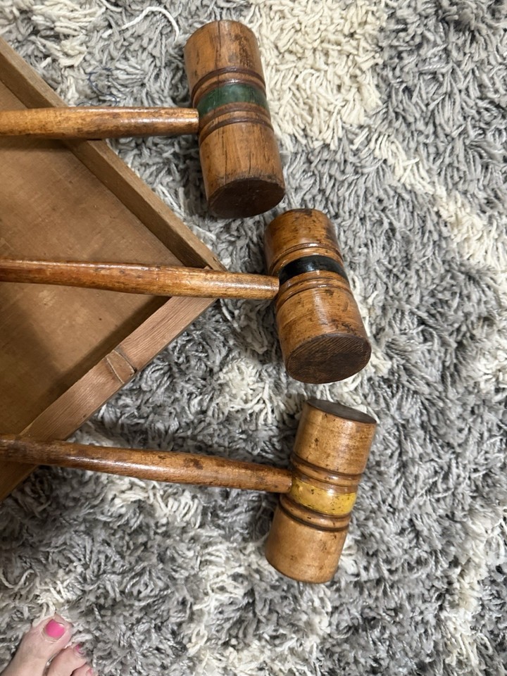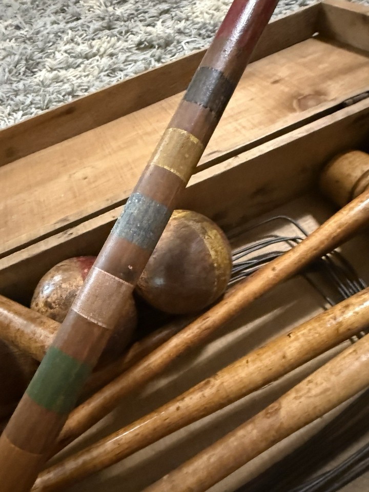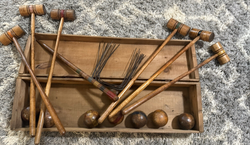 - Antique Croquet Set Hand-painted 6 Player & Wooden Case 1800'S Vintage