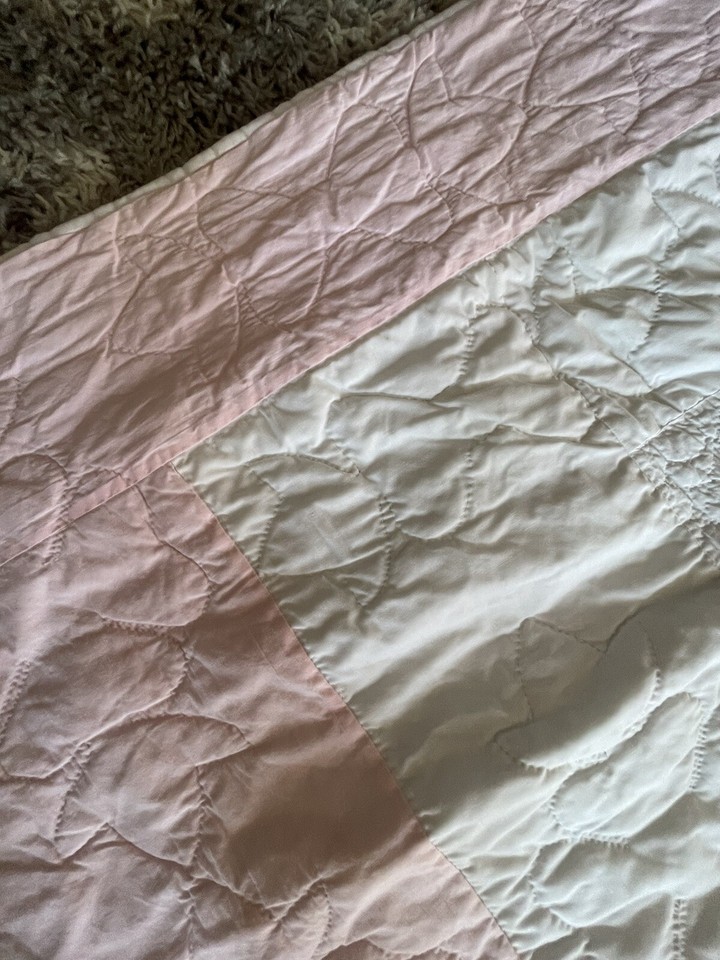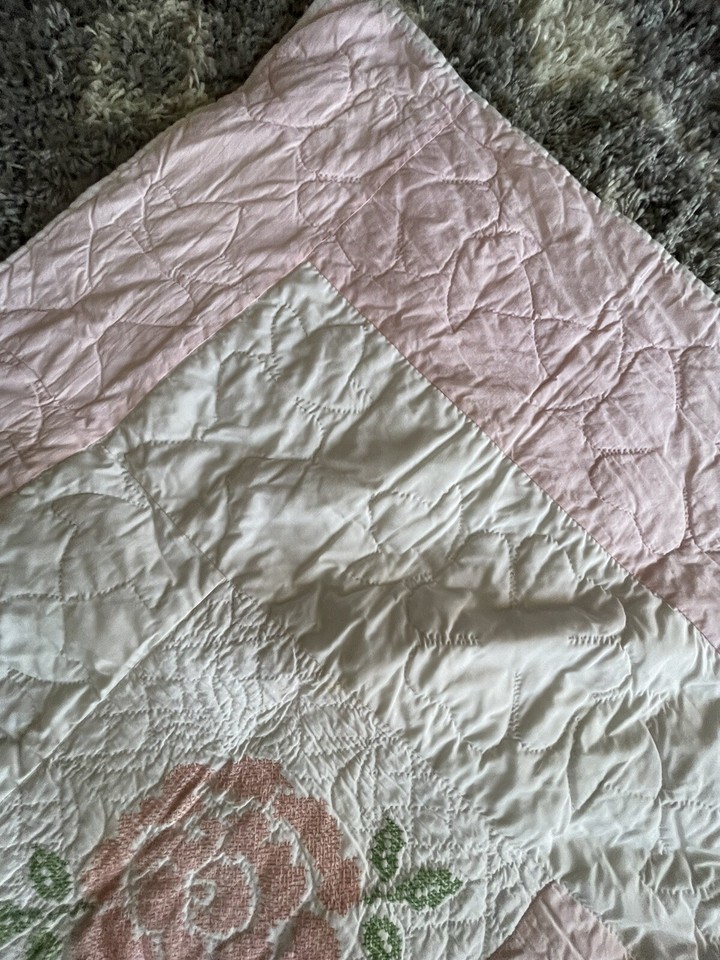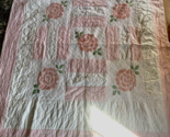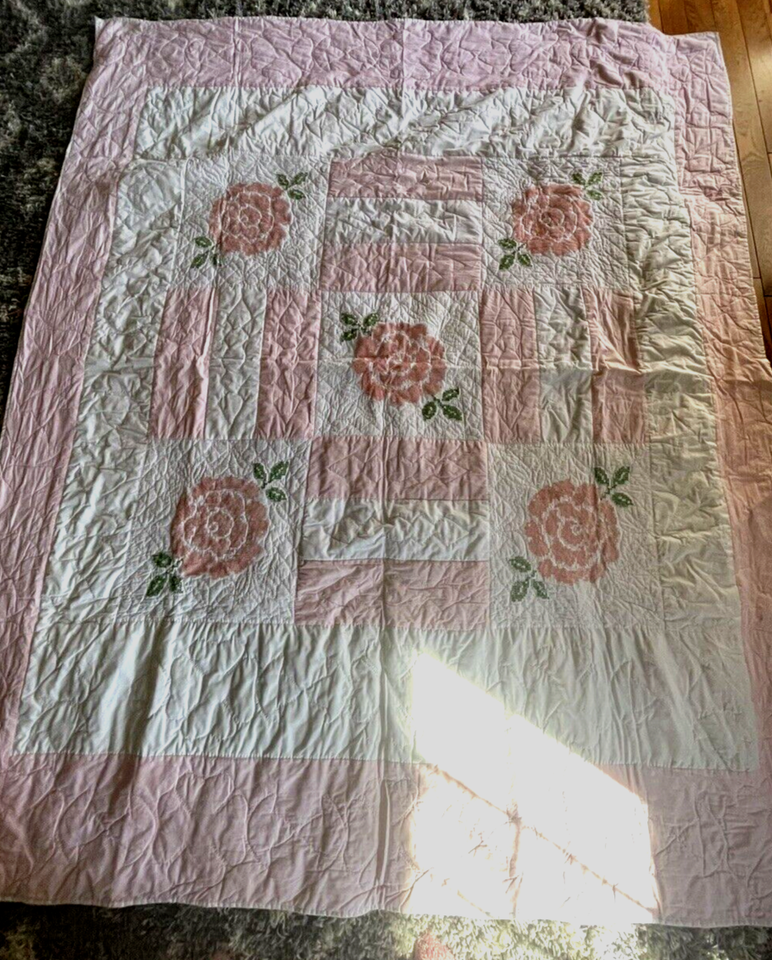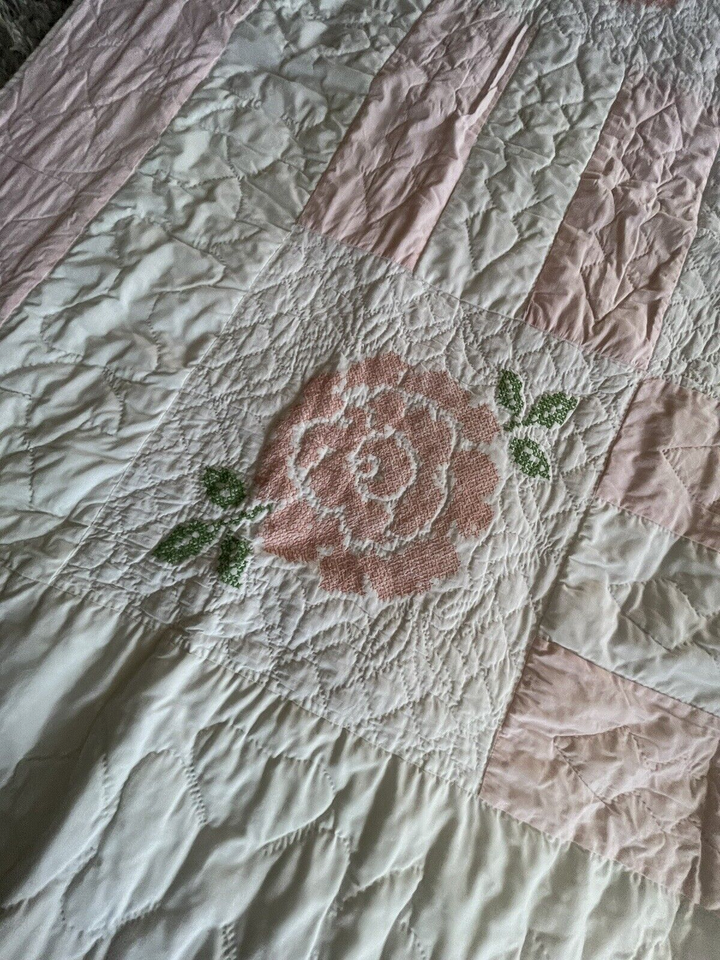 - Antique Cross Stitch Rose Pattern in Pink, Hand Quilted 1950's Lot B