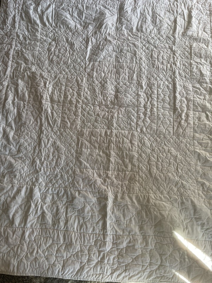 No holes. Hand-quilted tiny stitches. Cross Stitched Rose Pattern onto