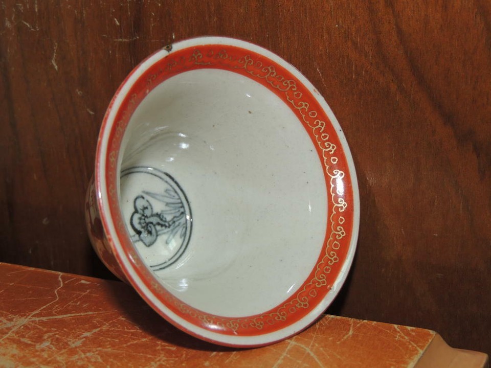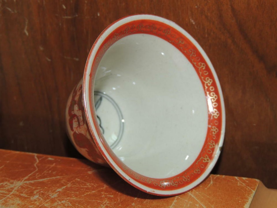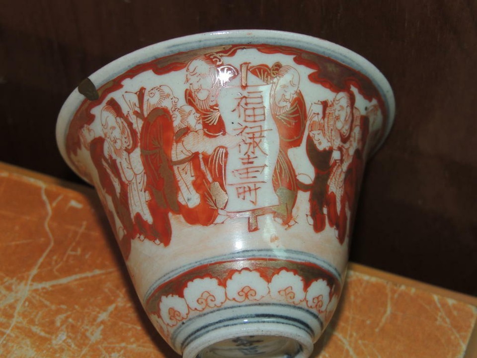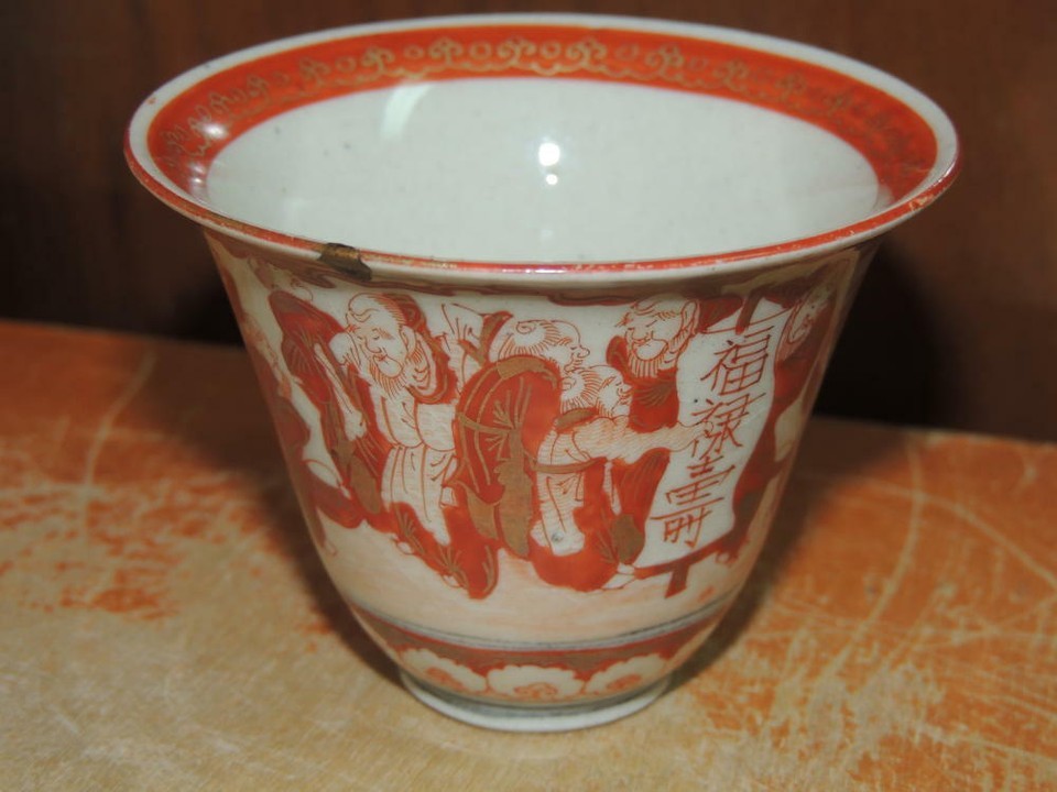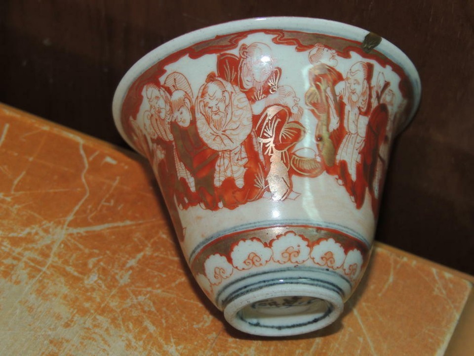 - Antique Cup RED GOLD BLUE mark Kutani Tsukuru possible Chinese Kangxi Export