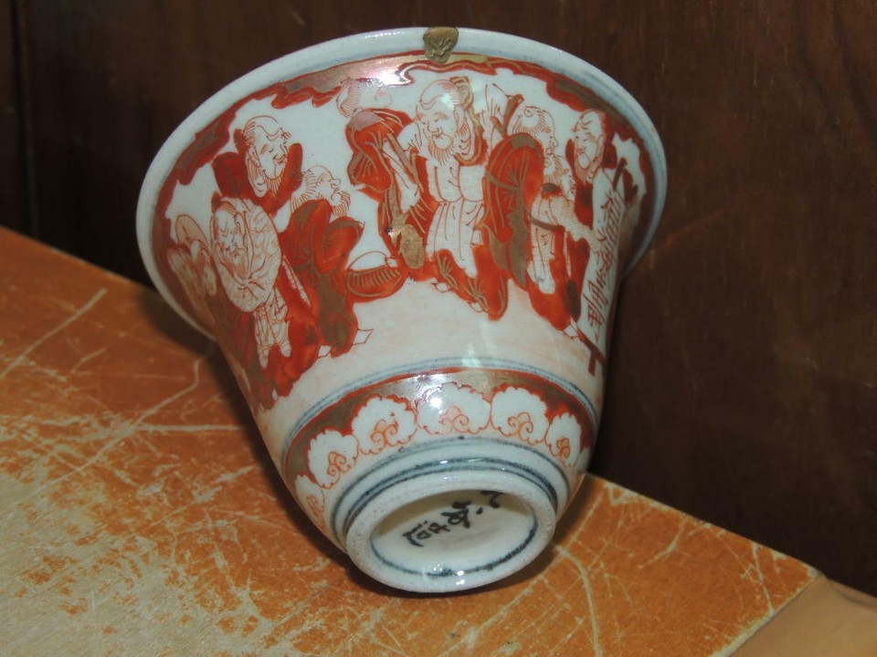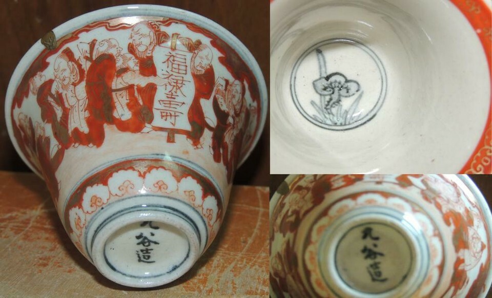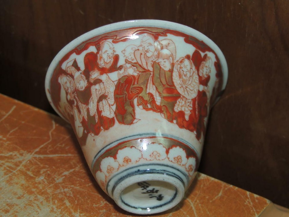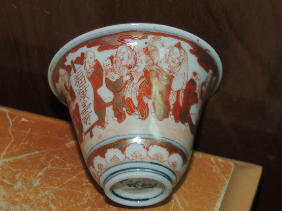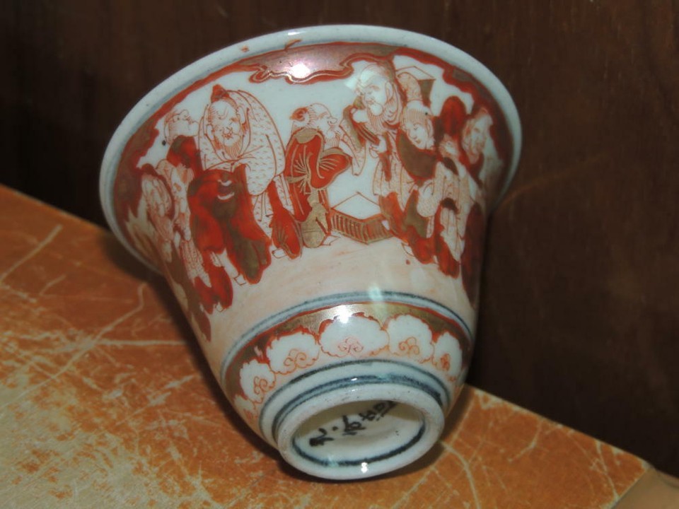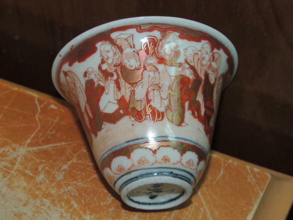 ONE CUPS. THE MARK ON THE UNDERSIDE APPEARS TO BE KUTANI TSUKURU, BUT THE DECORATION ON THE INTERIOR LOOKS LIKE A POSSIBLE CHINESE KANGXI DYNASTY MARK. POSSIBLY A CHINESE EXPORT DECORATED IN JAPAN, THOUGH I AM NOT AN EXPERT. YOU ARE THE EXPERT, IF YOU HAVE DOUBTS PLEASE DO NOT PURCHASE. PLEASE LOOK AT THE PICTURES CAREFULLY.