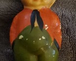 This antique collectible Cupie doll measures 4 inches in size and is made of either chalkware or paper mache. It has a charming vintage look and would make a great addition to any doll collection. Its small size makes it perfect for display in a cabinet or on a shelf.