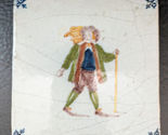 - Antique Dutch Polychrome Tile Man Walking Stick Hat Backpack Crazed