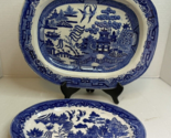 Antique Edwardian English Blue and White Willow Pattern Serving Platter & Bowl