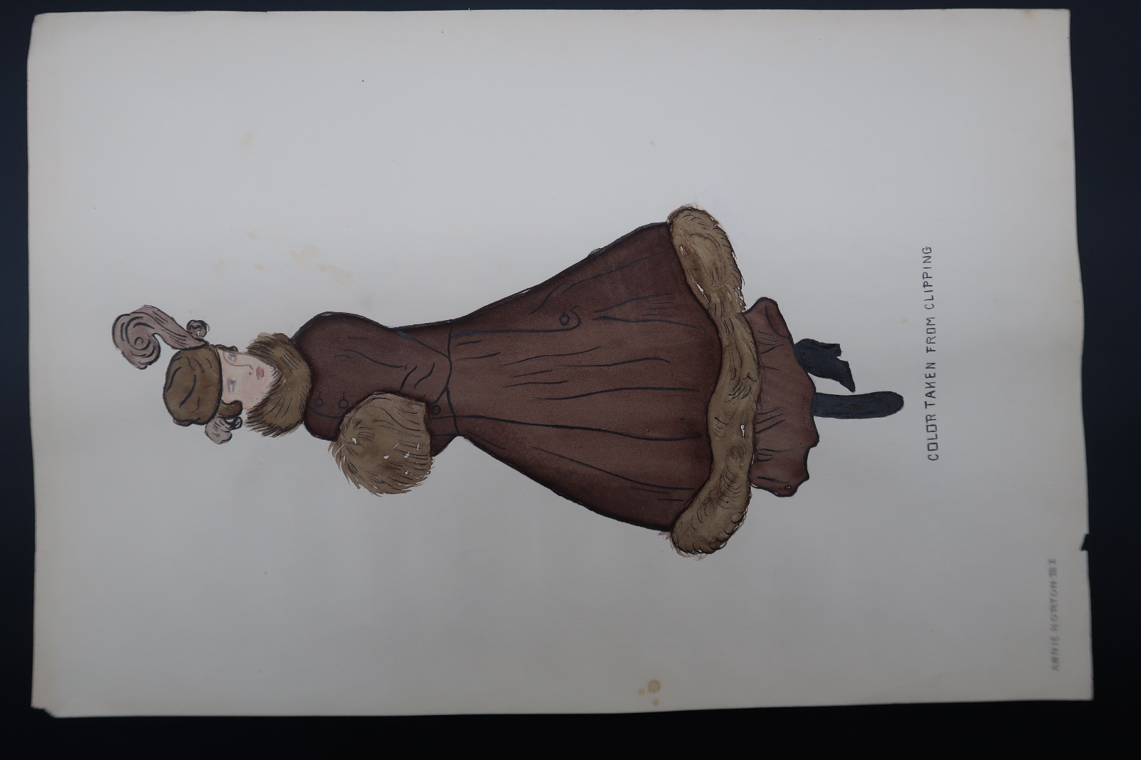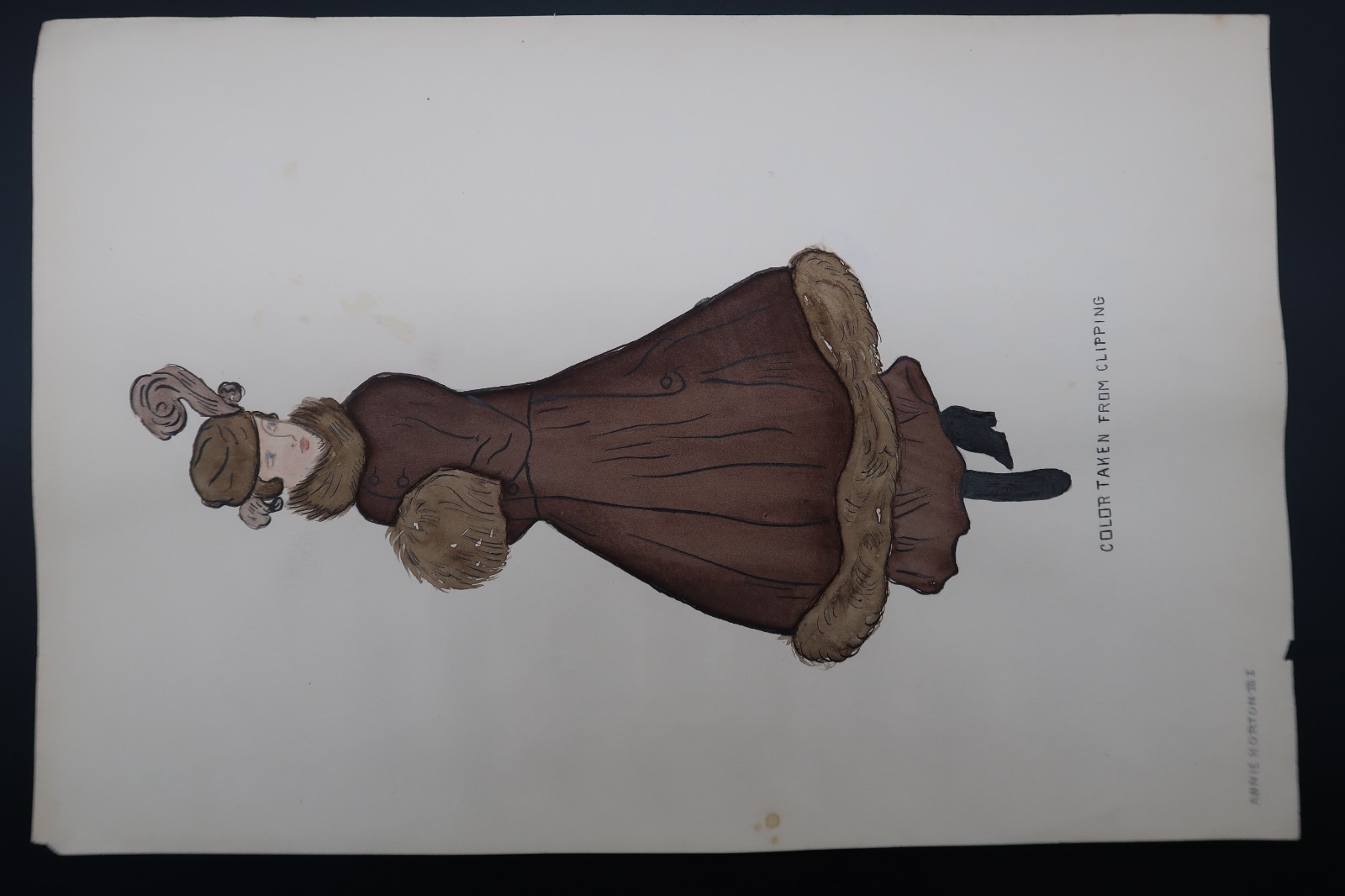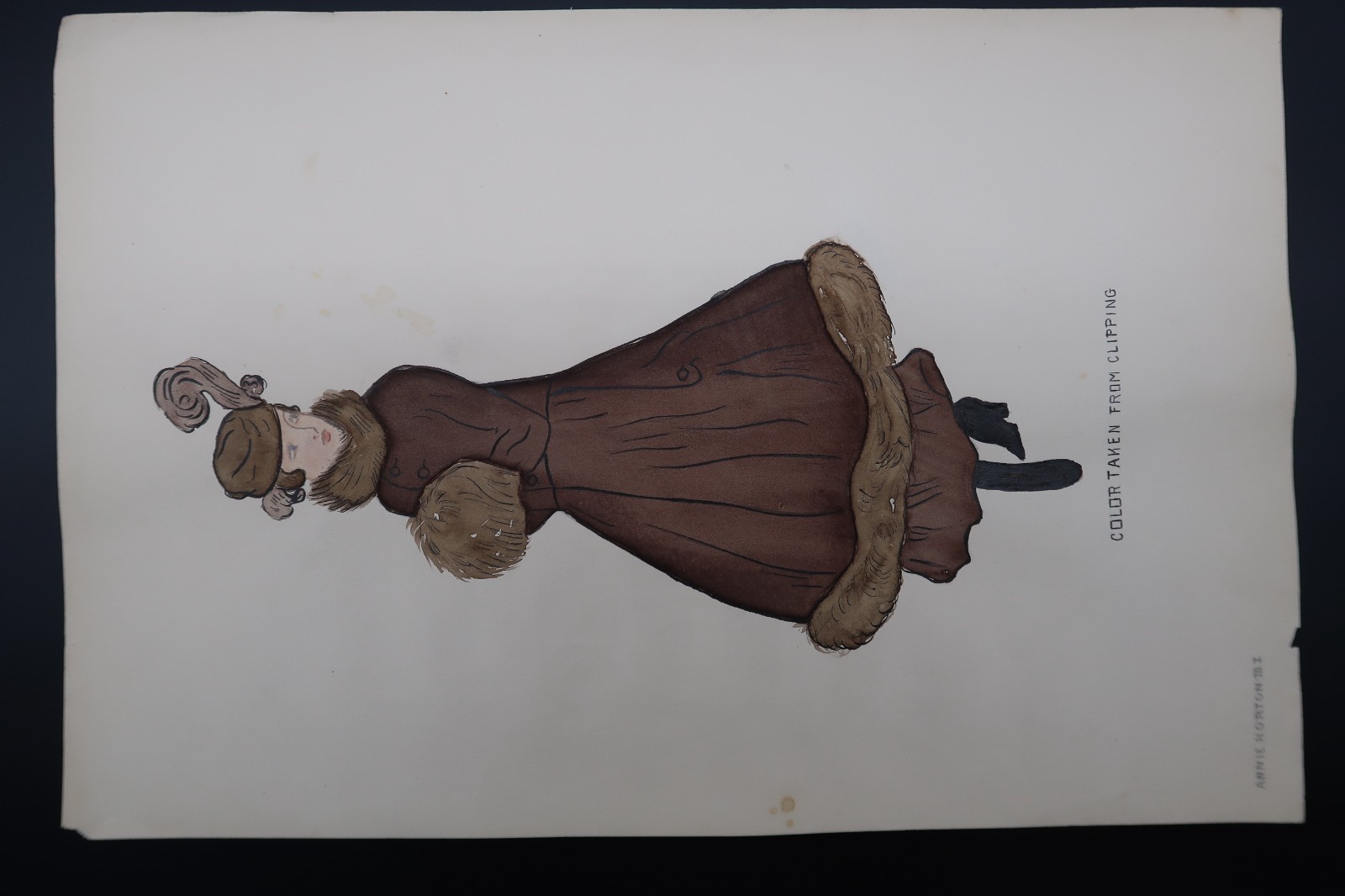 - Antique Fashion Design Hand Colored Illustration Art Signed Annie Horton "Brown"