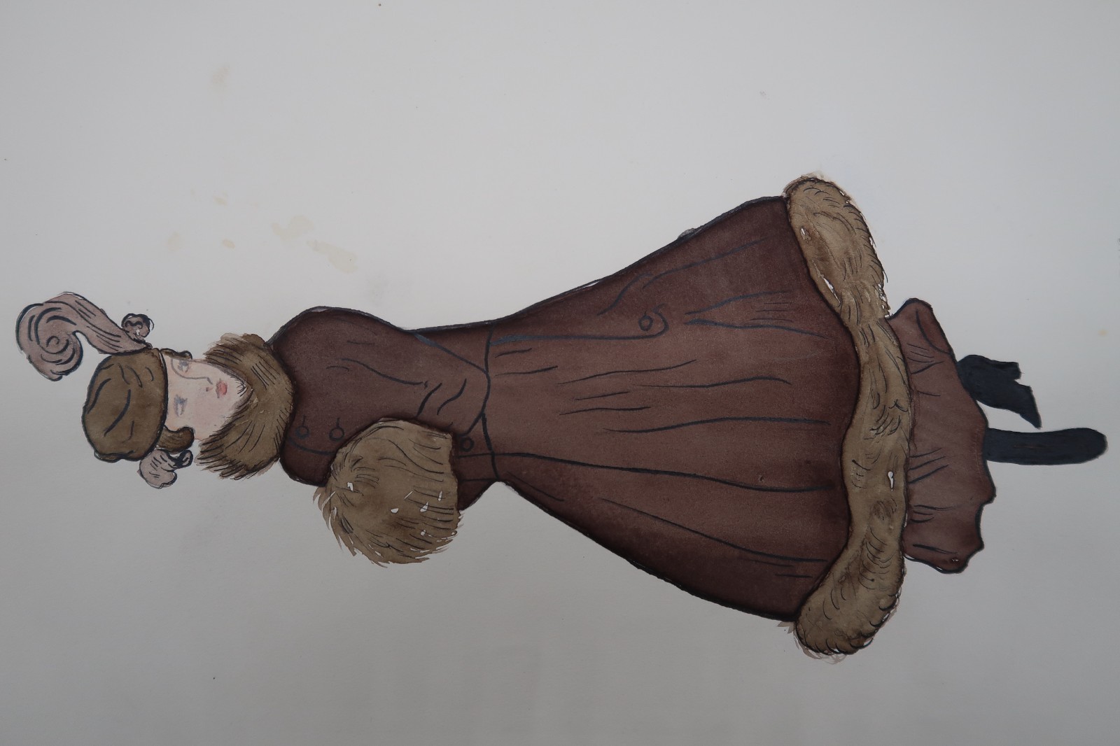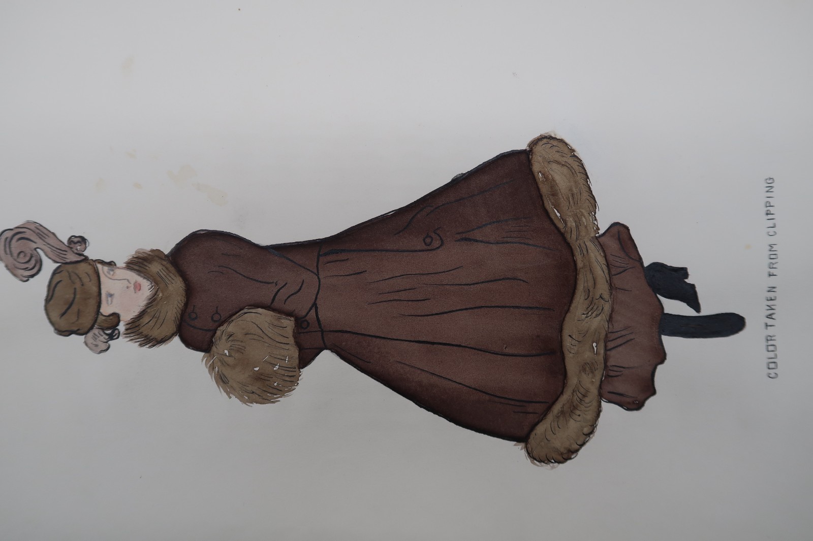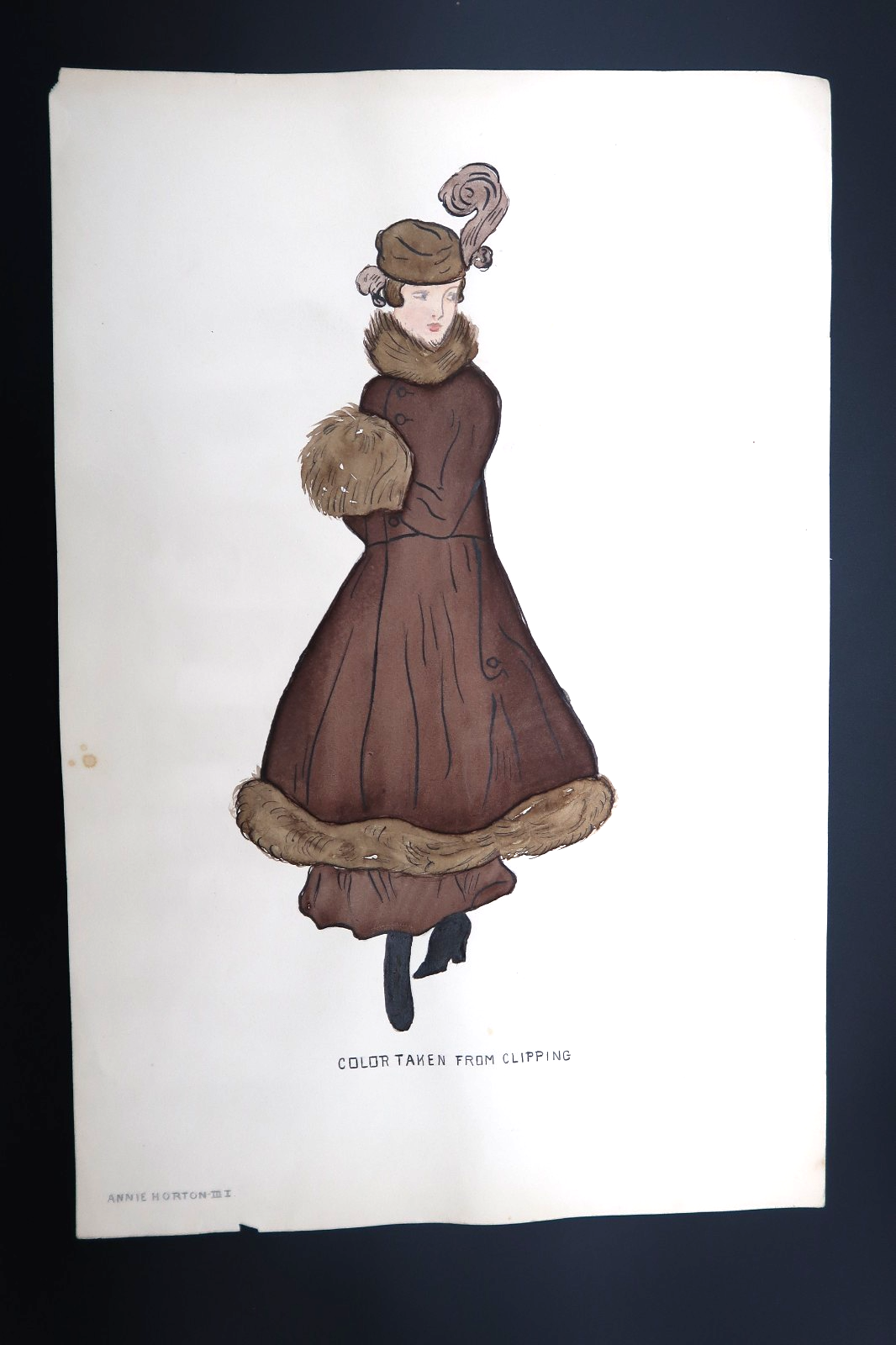 - Antique Fashion Design Hand Colored Illustration Art Signed Annie Horton "Brown"