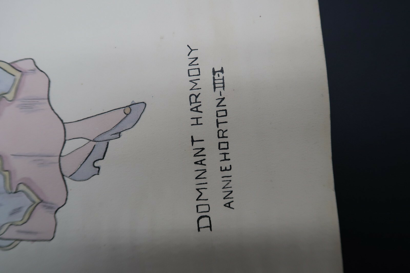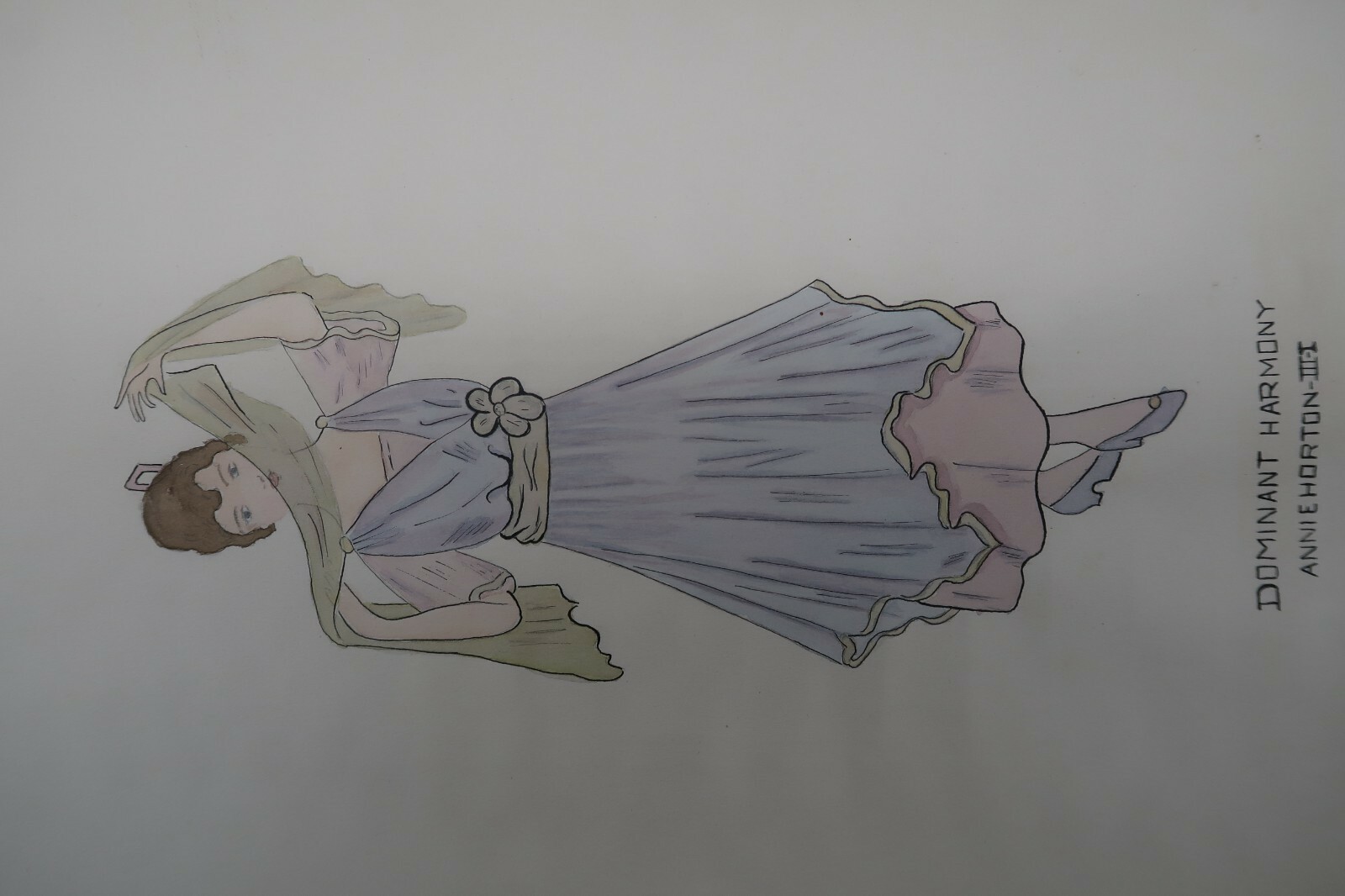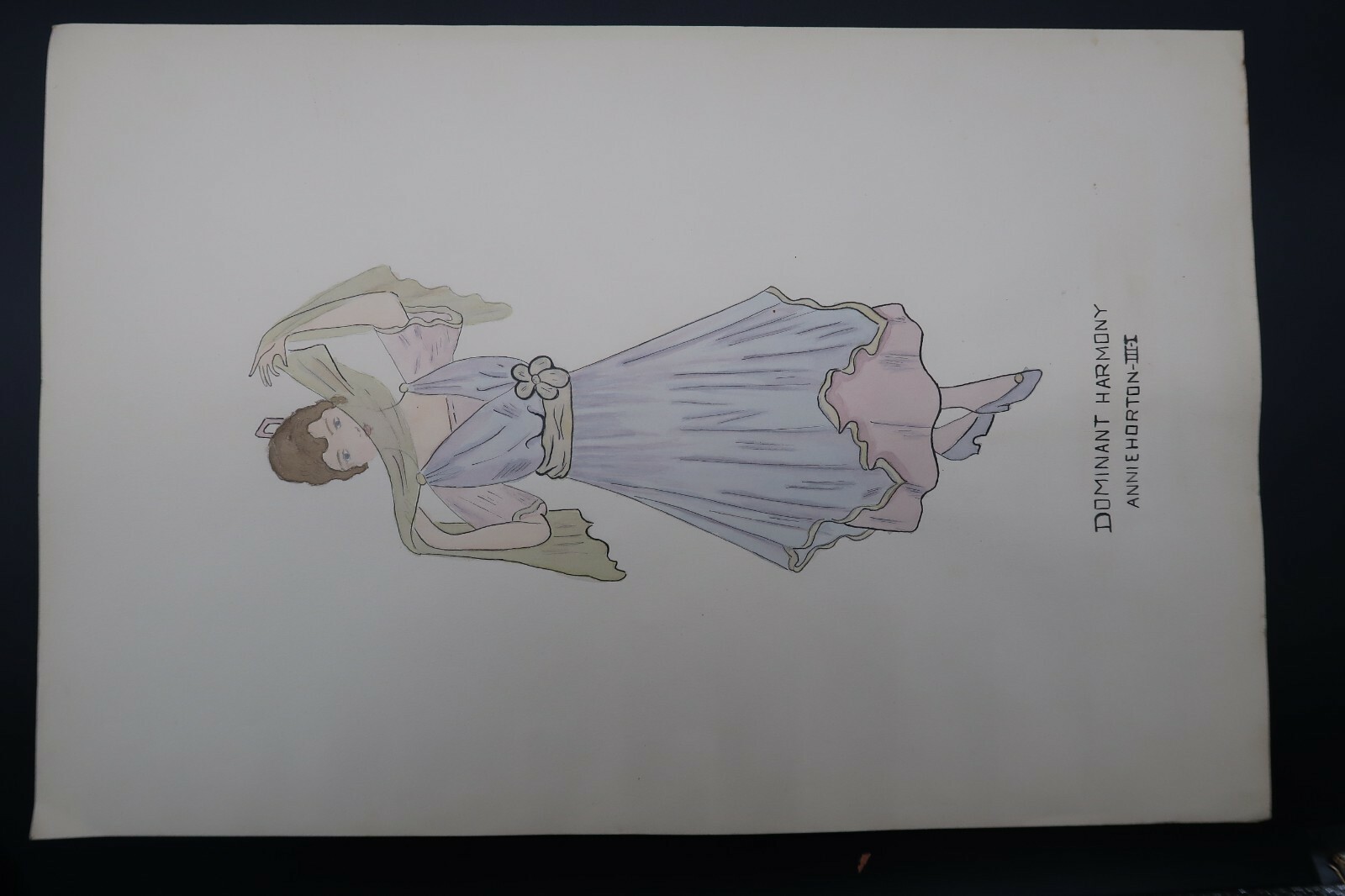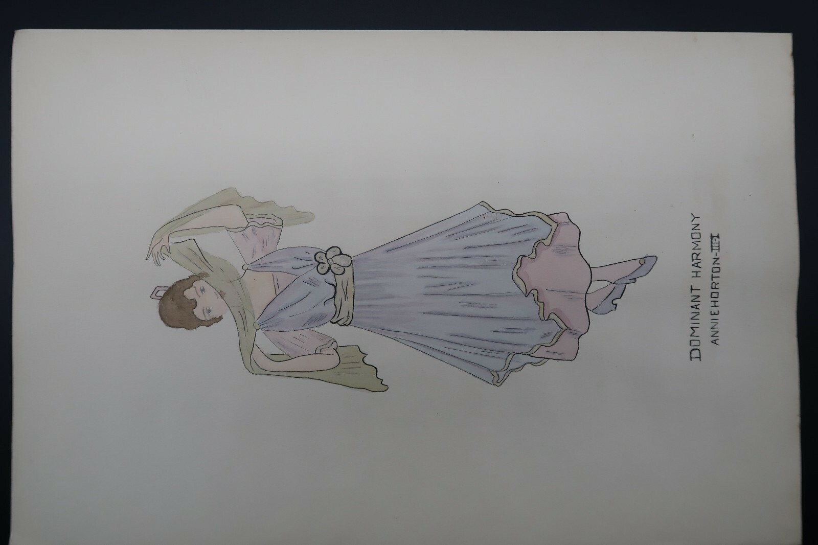 - Antique Fashion Design Hand Colored Illustration Art Signed Annie Horton Dress