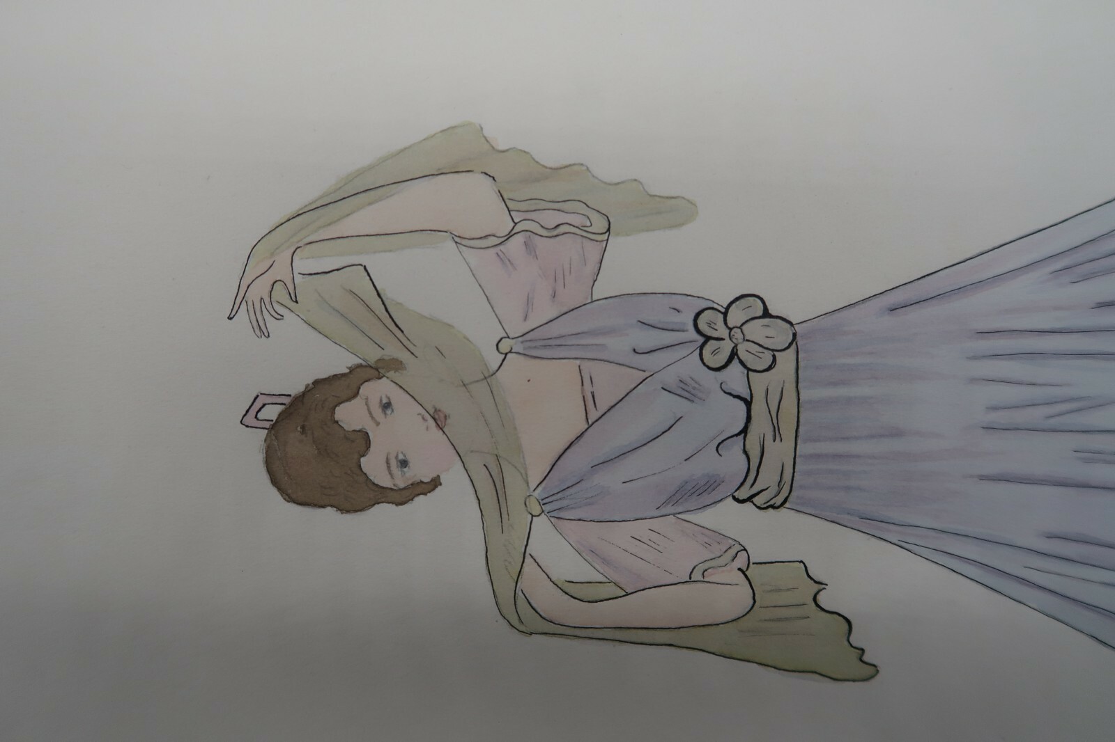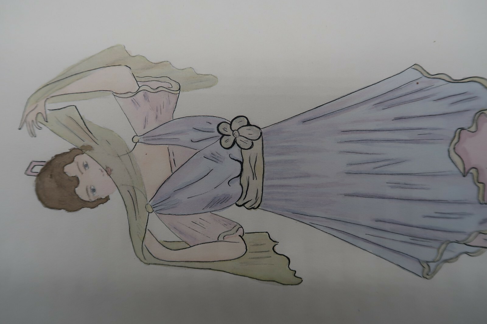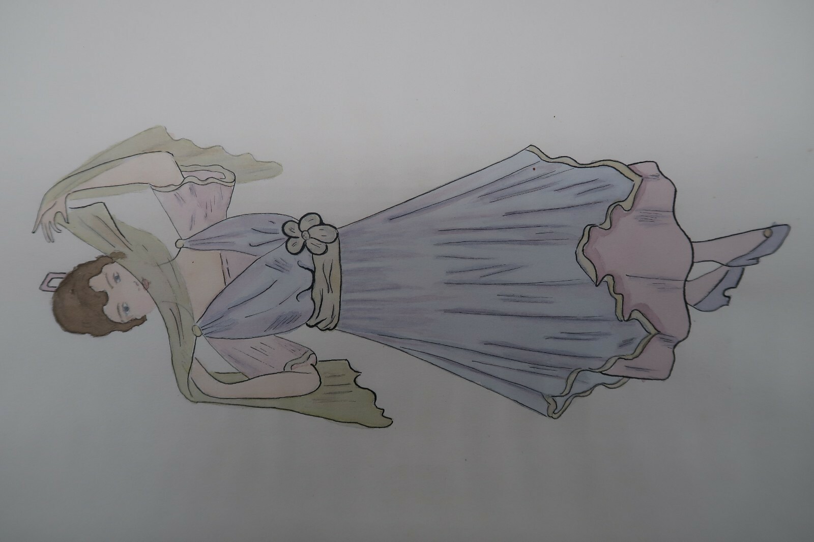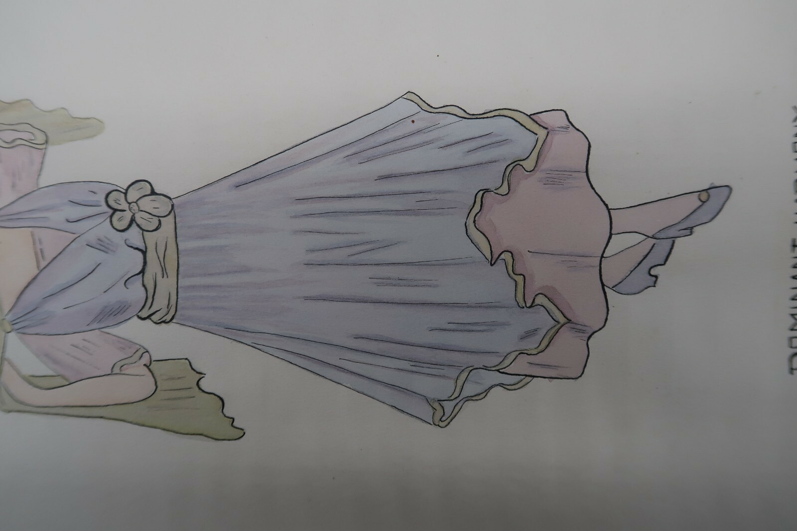 - Antique Fashion Design Hand Colored Illustration Art Signed Annie Horton Dress