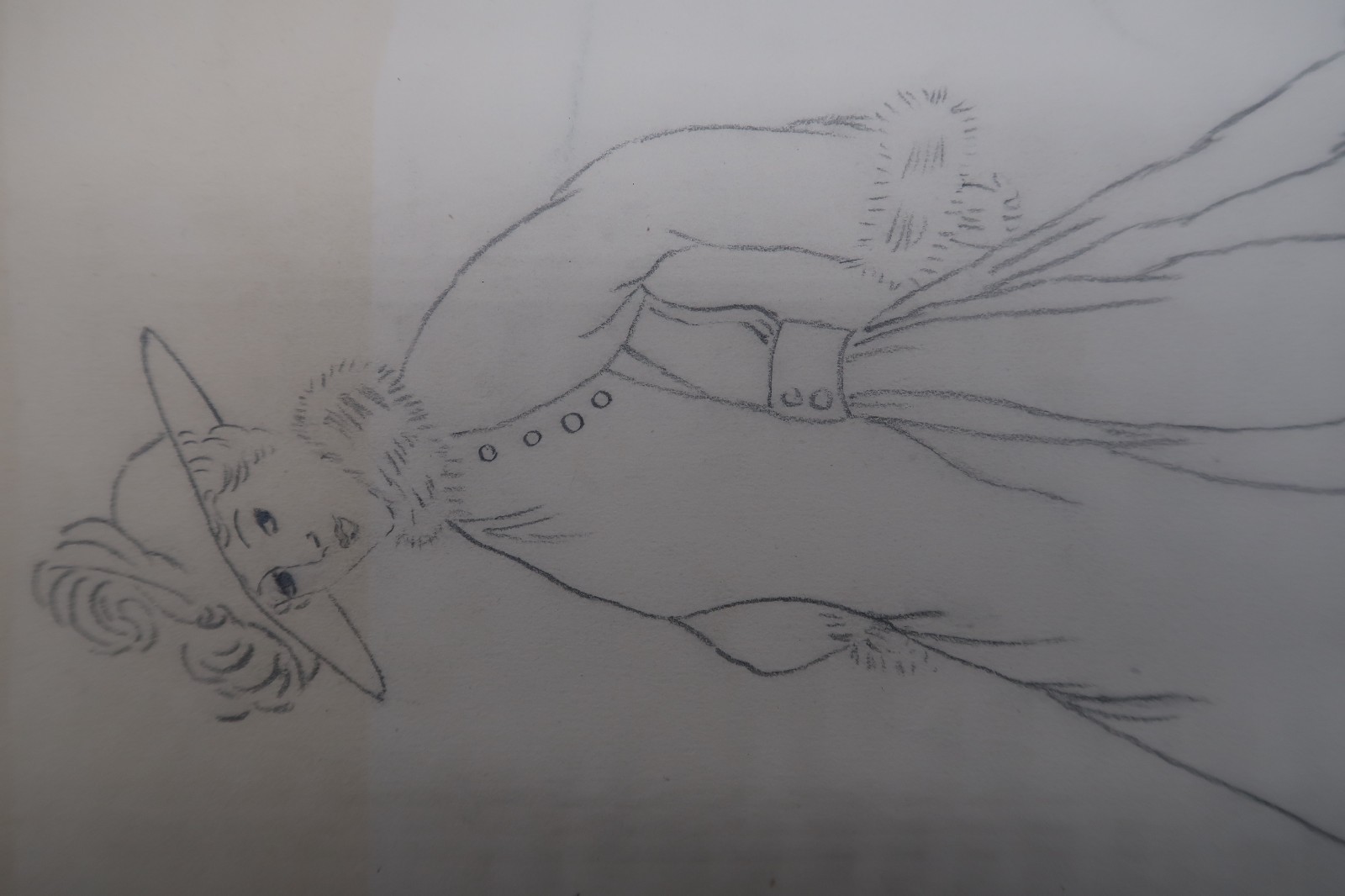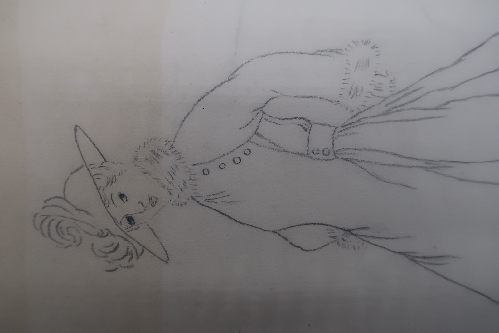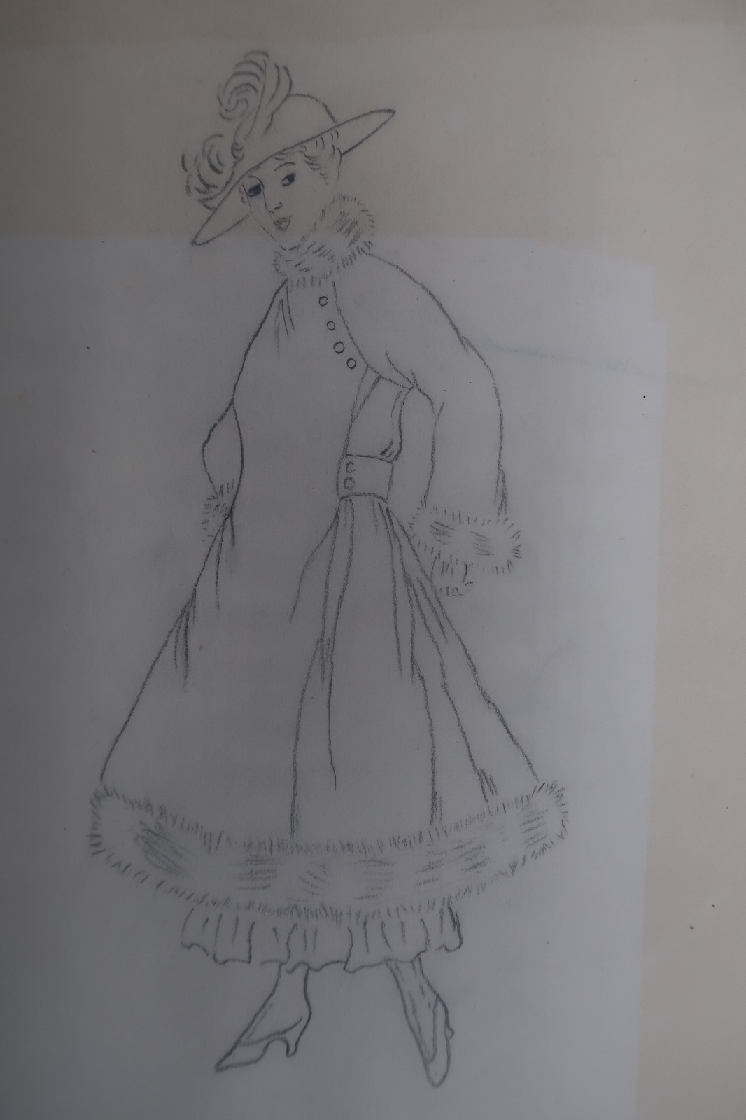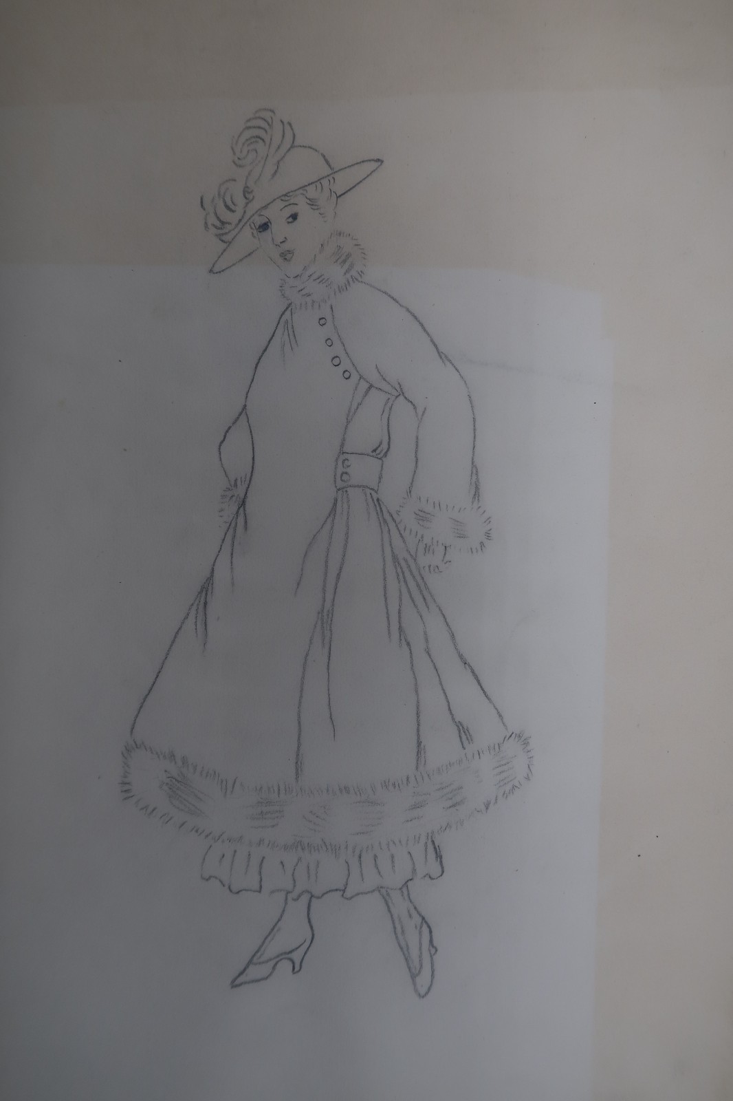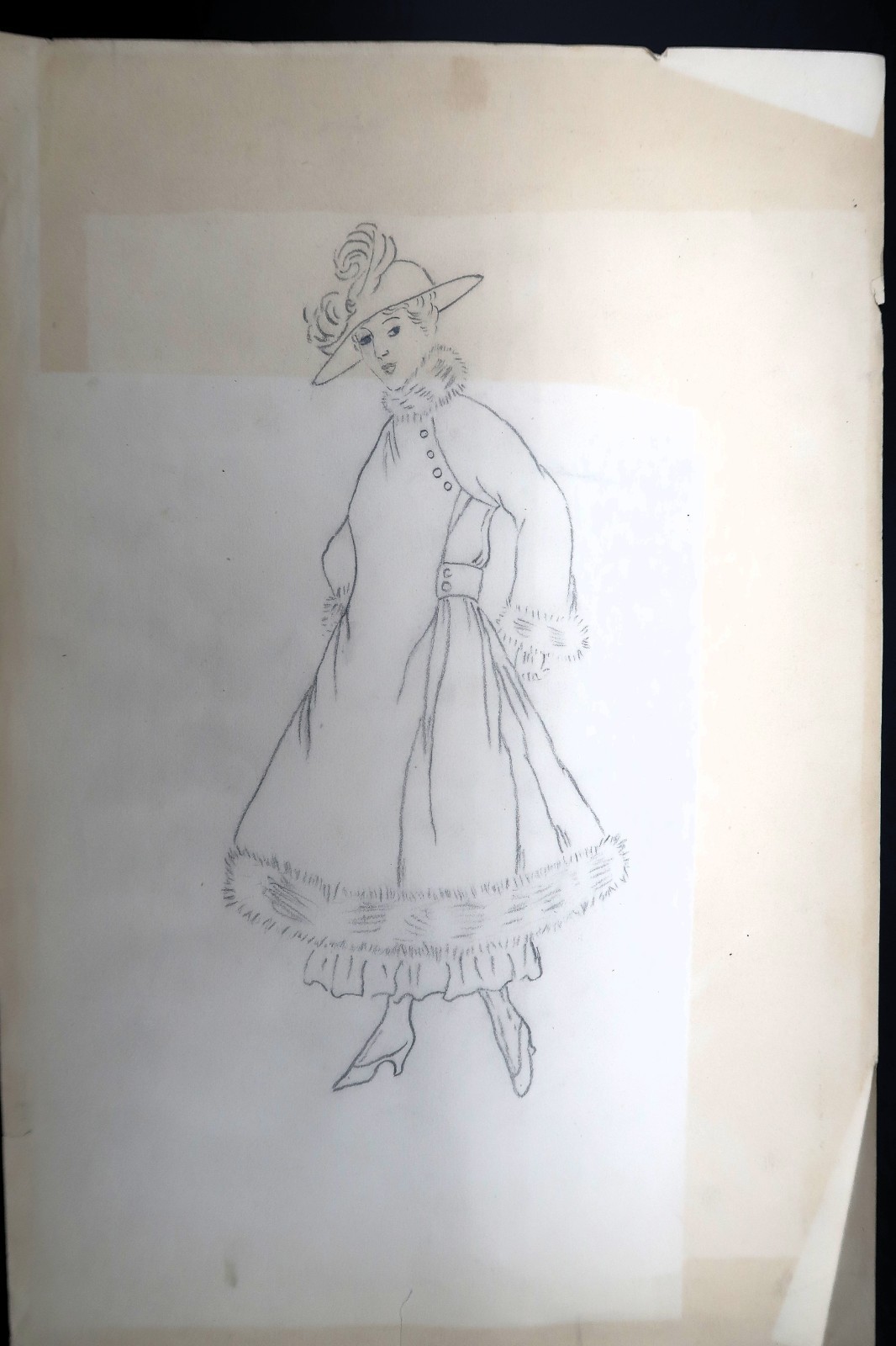 - Antique Fashion Design Illustration Art unsigned Annie Horton c.1920 Pencil