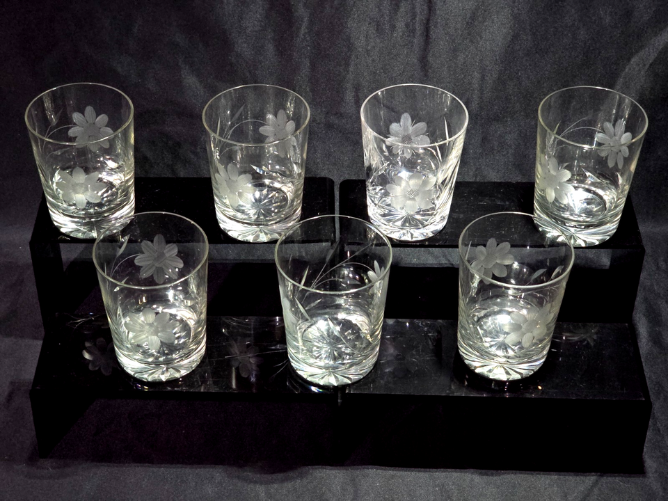- Antique FOSTORIA CUT 129 Double Old Fashioned Glass - ETCHED - Set Of 6 + 1 FREE