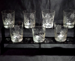 Note: 6 of the glasses are Fostoria and are a matched set. The 7th free glass is a very similar pattern...so close that you wouldn't notice any difference without looking hard, and is also a little heavier than the rest. I am including it for free because the patterns are so close that I didn't notice the difference until after I had taken the photos. As a result, the free glass is not eligible for a discount or refund, if something unfortunate should happen.