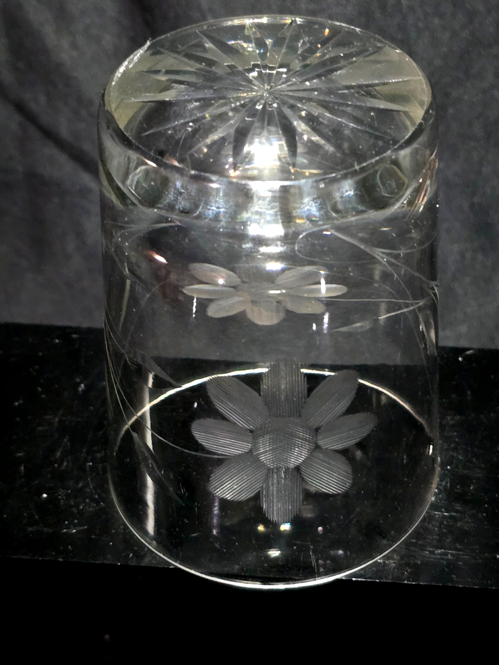 Vintage and likely antique set of 6+1 Fostoria Cut 129 old fashioned glasses in excellent condition. Great clarity, no evidence of damage or wear. Measures 3.875" tall and looks to have a capacity of about 8-9 ounces. Circa 1918-1929.