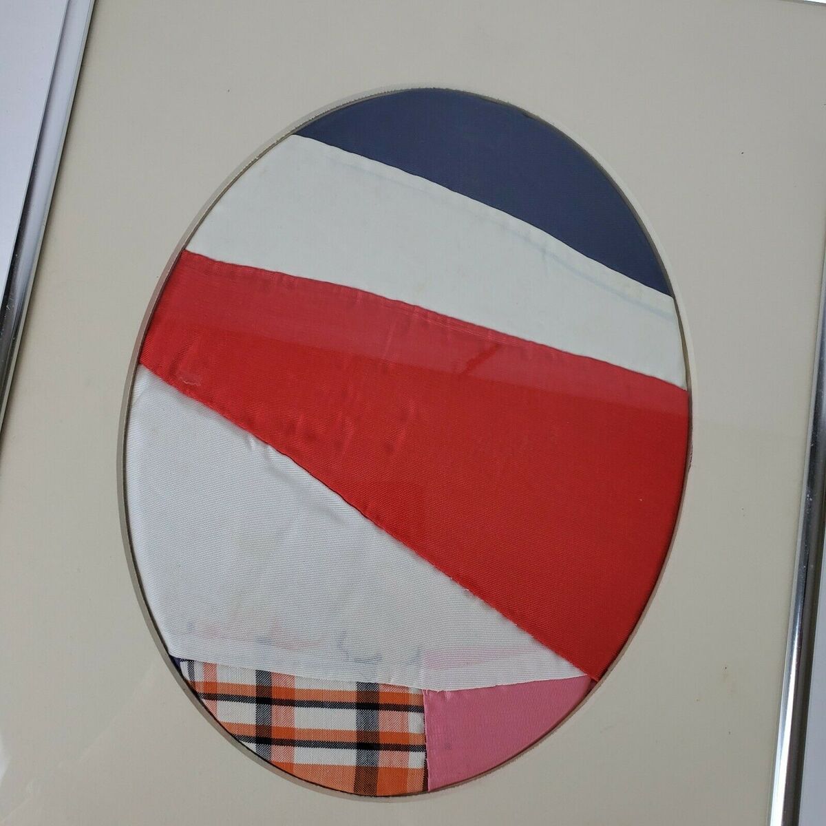 - Antique Framed Early 1900s Quilt FOLK Art Work Red White Blue Patriotic 11x14 In