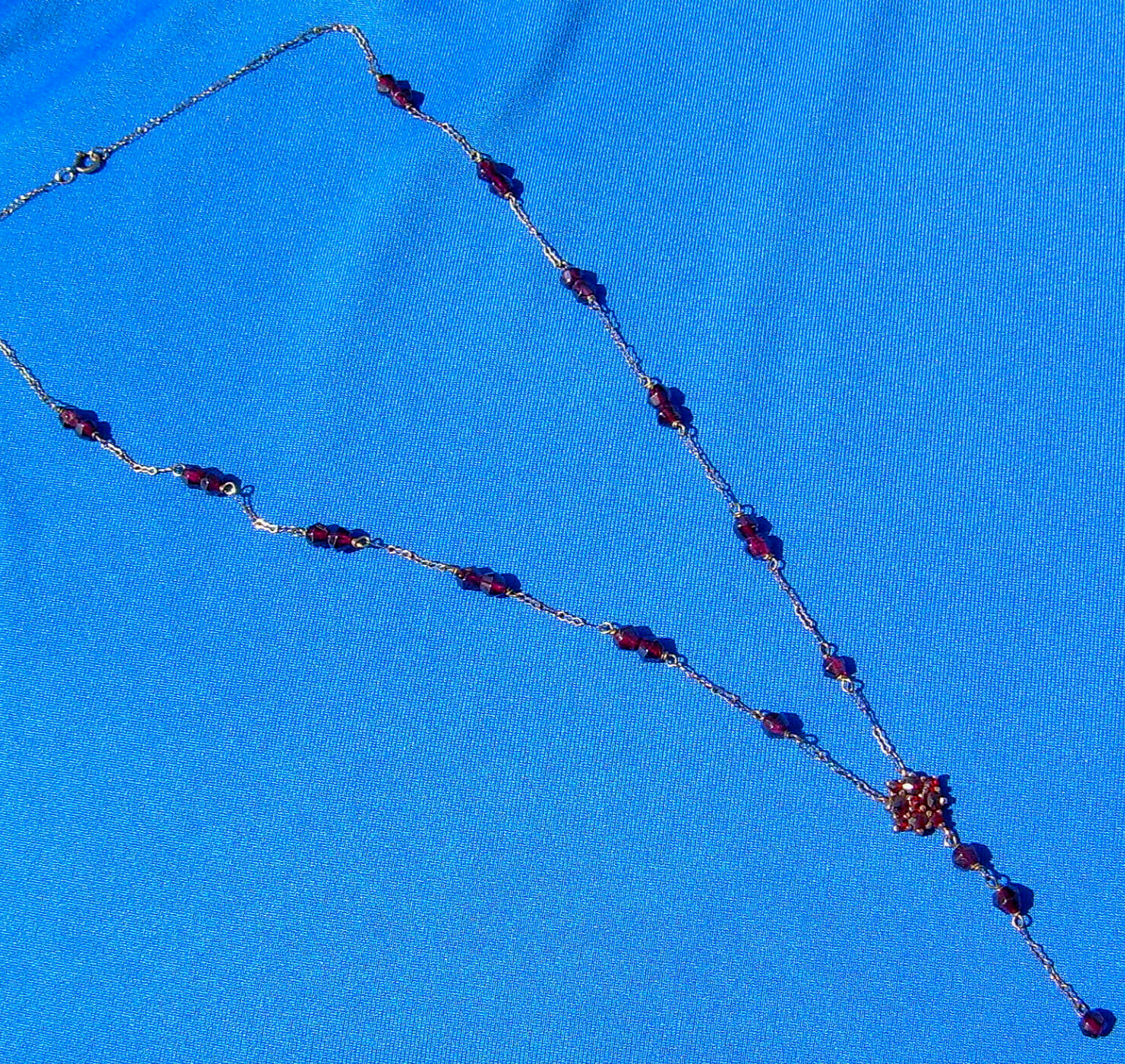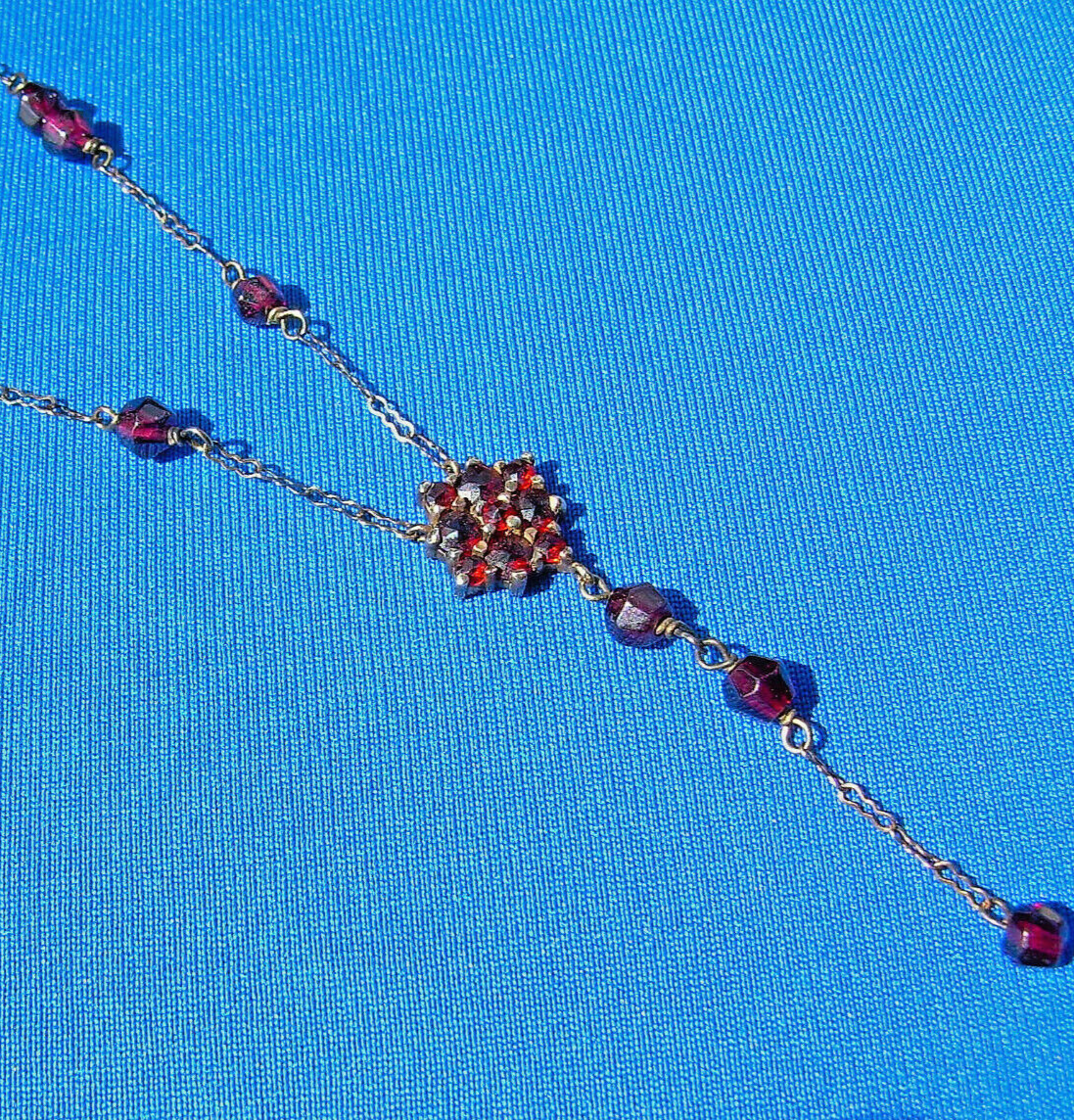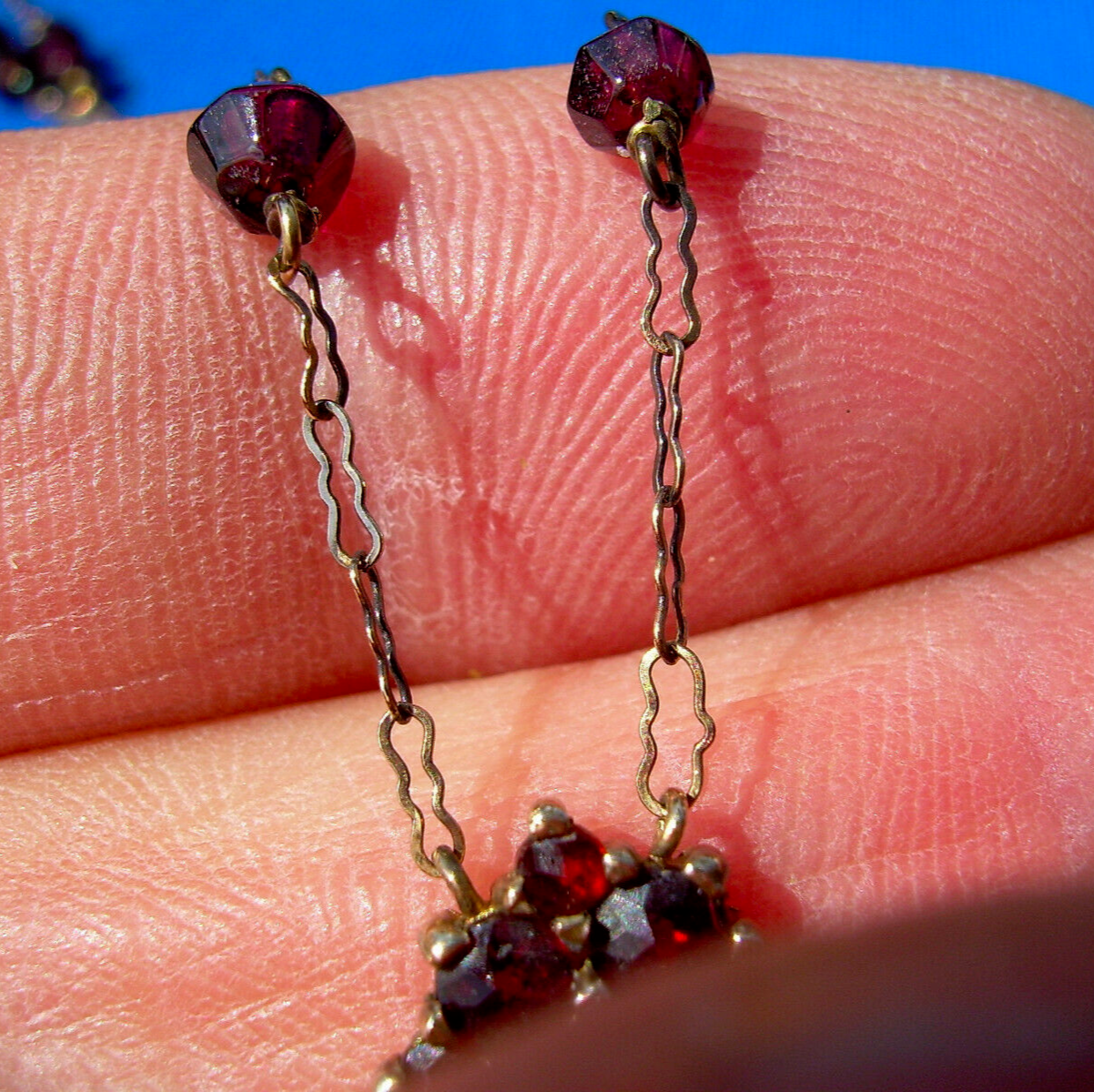 - Antique Garnet Deco Necklace Flapper era Vintage 18" inch Chain 10K Gold