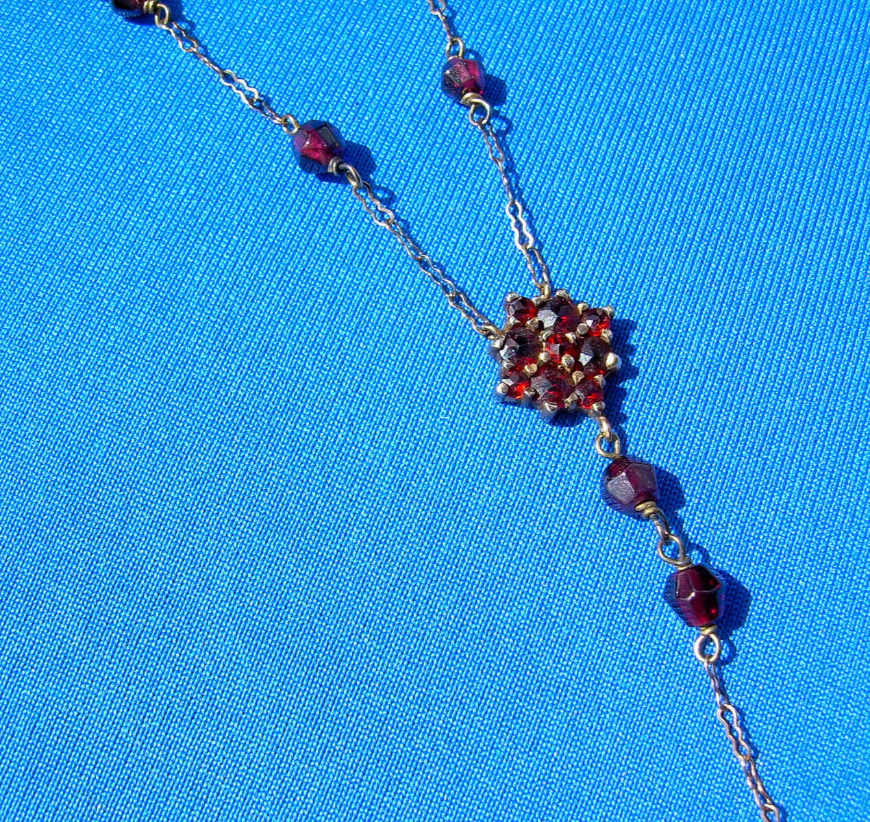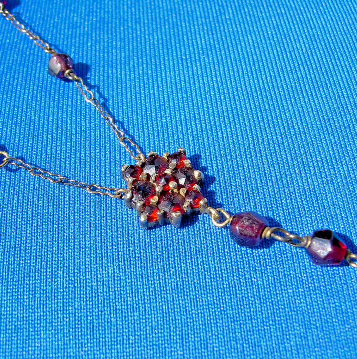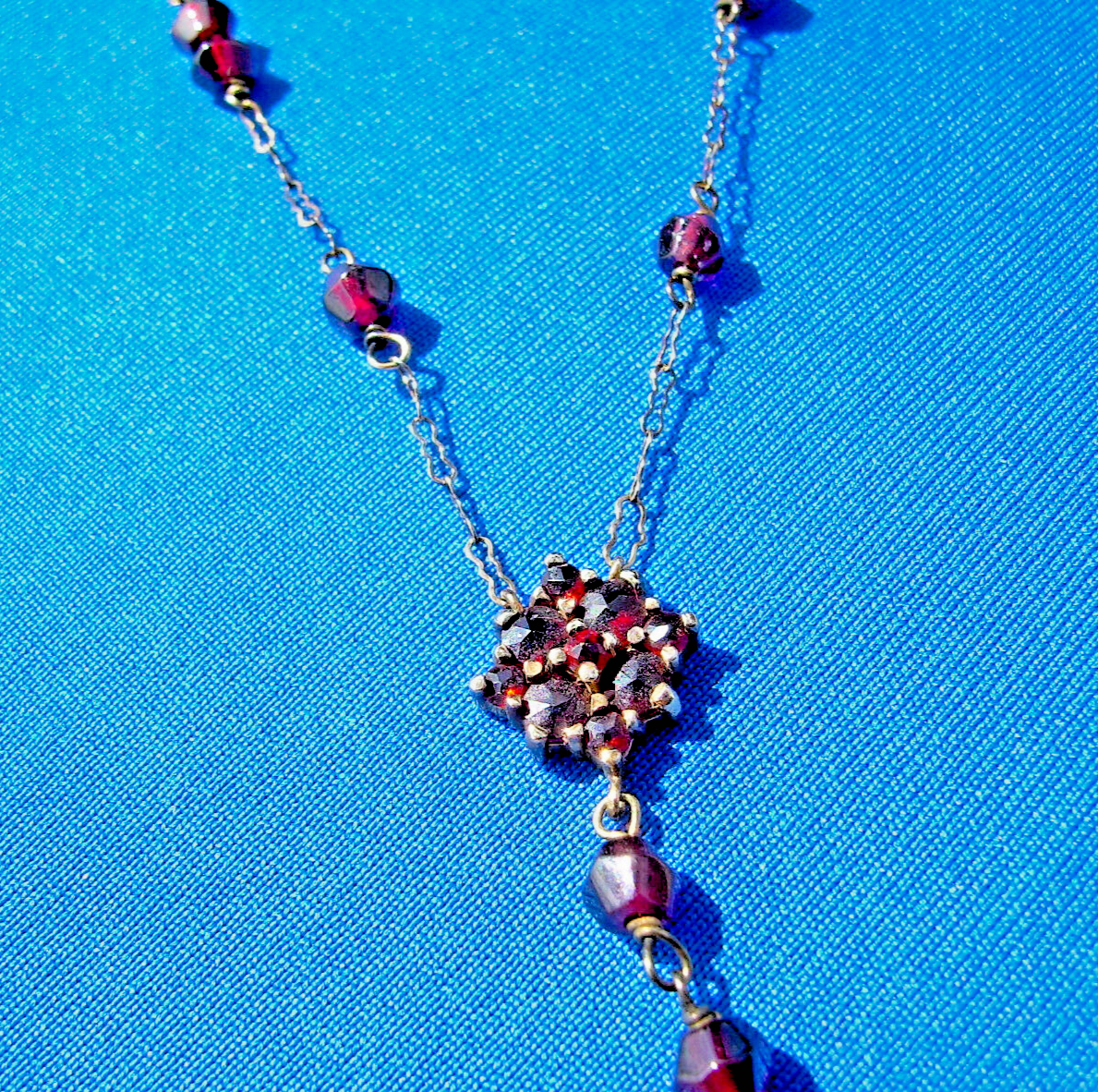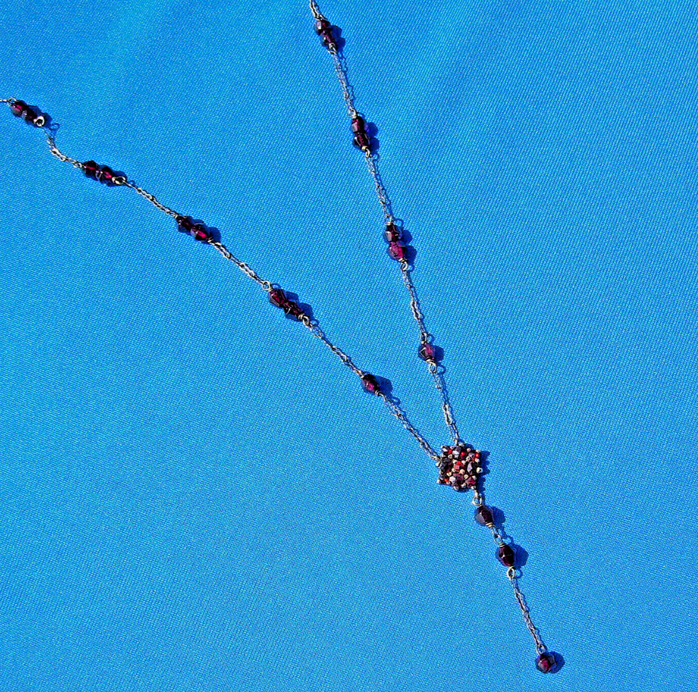 - Antique Garnet Deco Necklace Flapper era Vintage 18" inch Chain 10K Gold