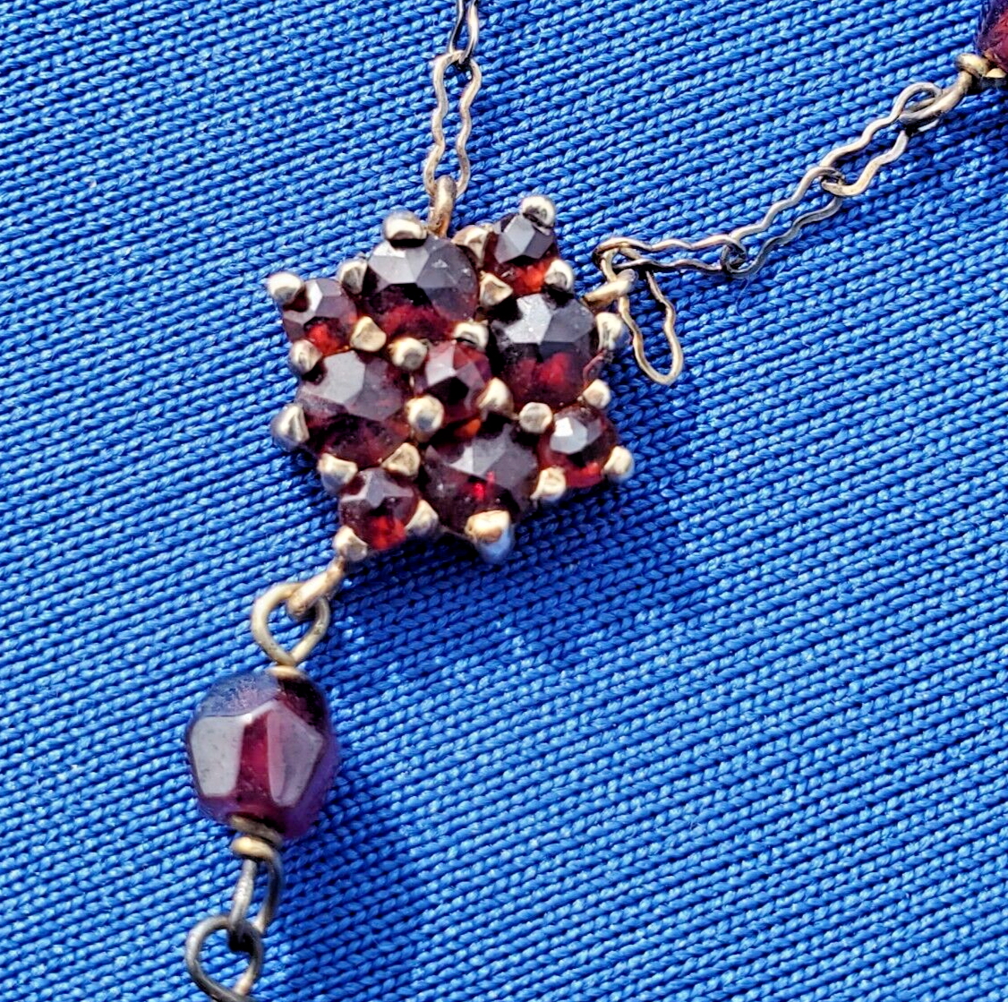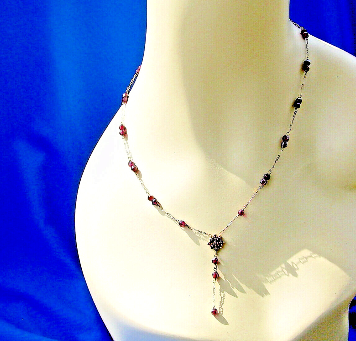 Antique Garnet Deco Necklace Flapper era Vintage 18" inch Chain 10K Gold