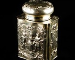 - Antique German Repousse Tea Caddy Jar 800 Silver Scenes of Play w/ Lid 218.6g