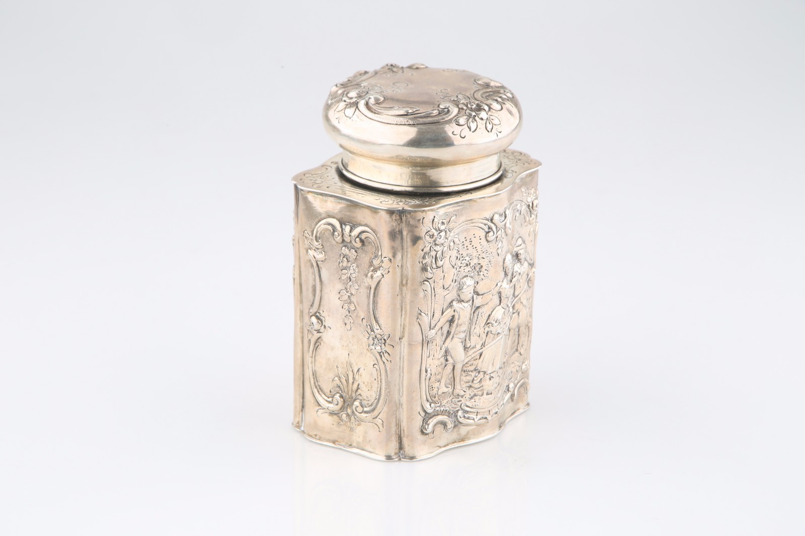 Antiker deutscher Repoussee -Tee Caddy mit abnehmbarem Deckel