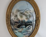 Antique Gilded Frame Oval Wood Bubble Glass Carved Gesso Convex Ornate Picture