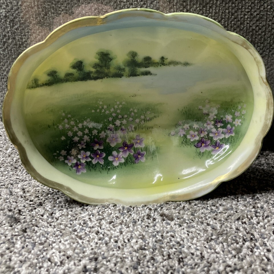 Antique Hand Painted Nippon Japan Footed Bowl Japan Approx 8”x6”x3 Landscape