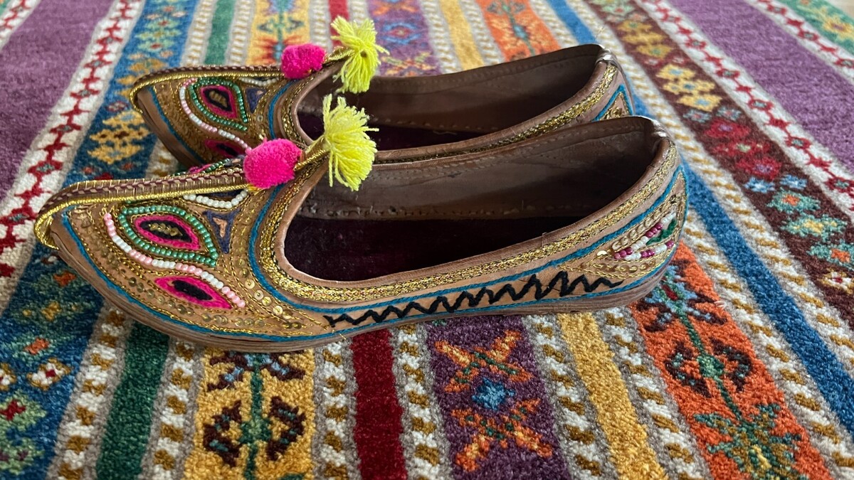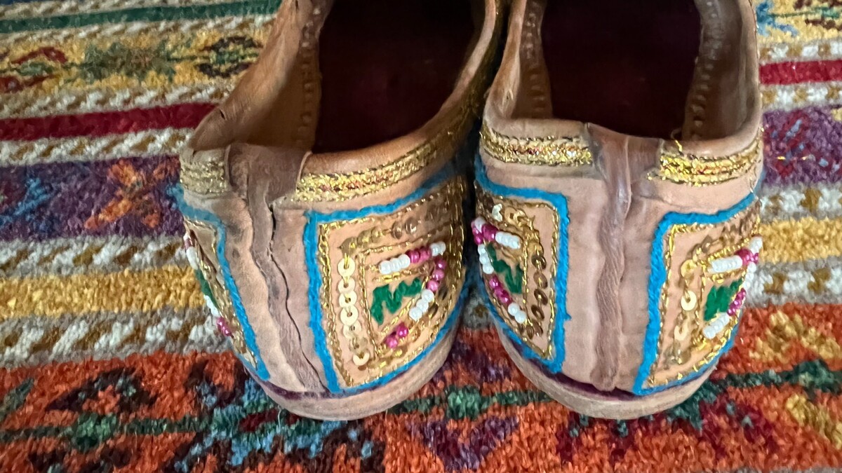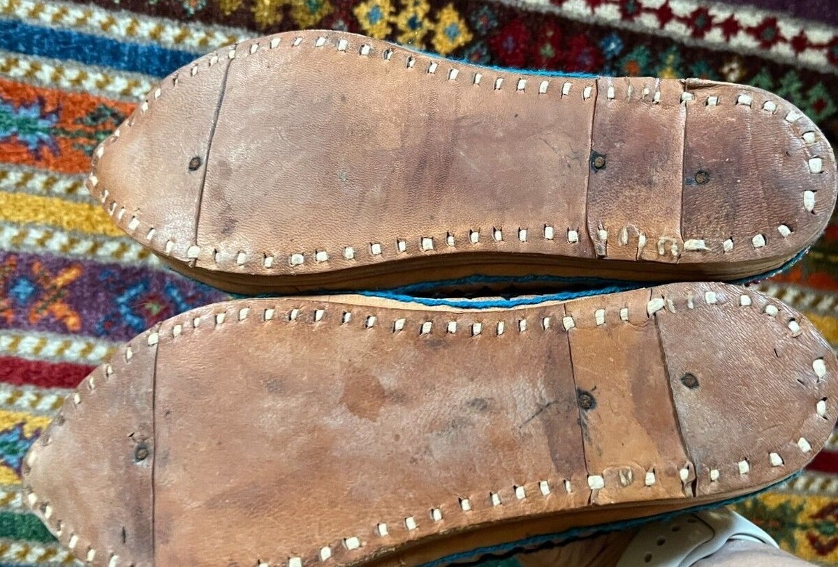 - Antique Handmade Slippers Shoes Unisex Beaded Leather Tassel womens 9.5ish US