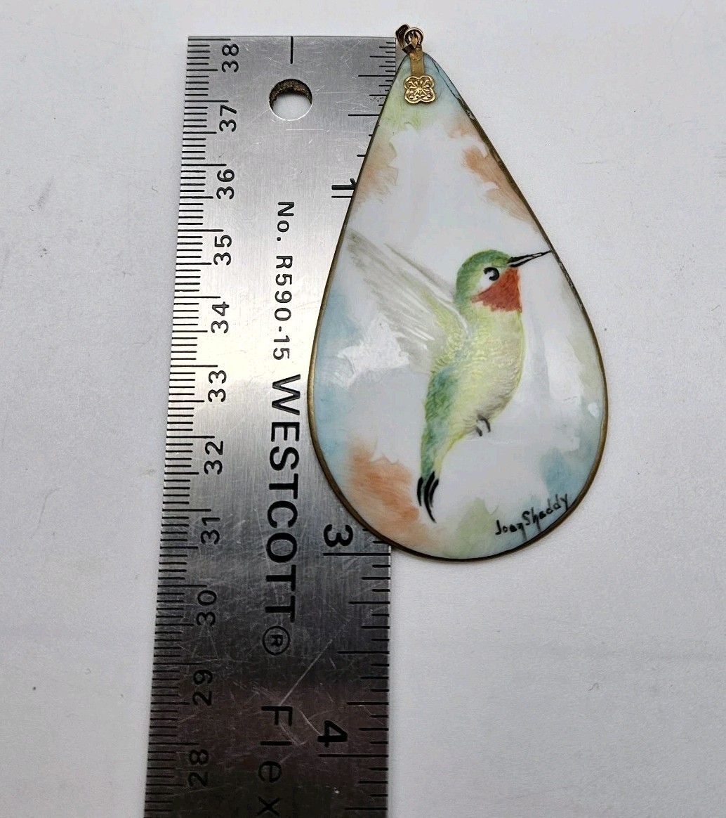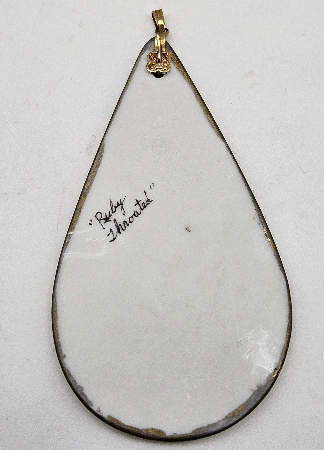- Antique Handpainted Hummingbird Teardrop Porcelain Necklace Pendant Signed