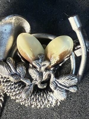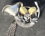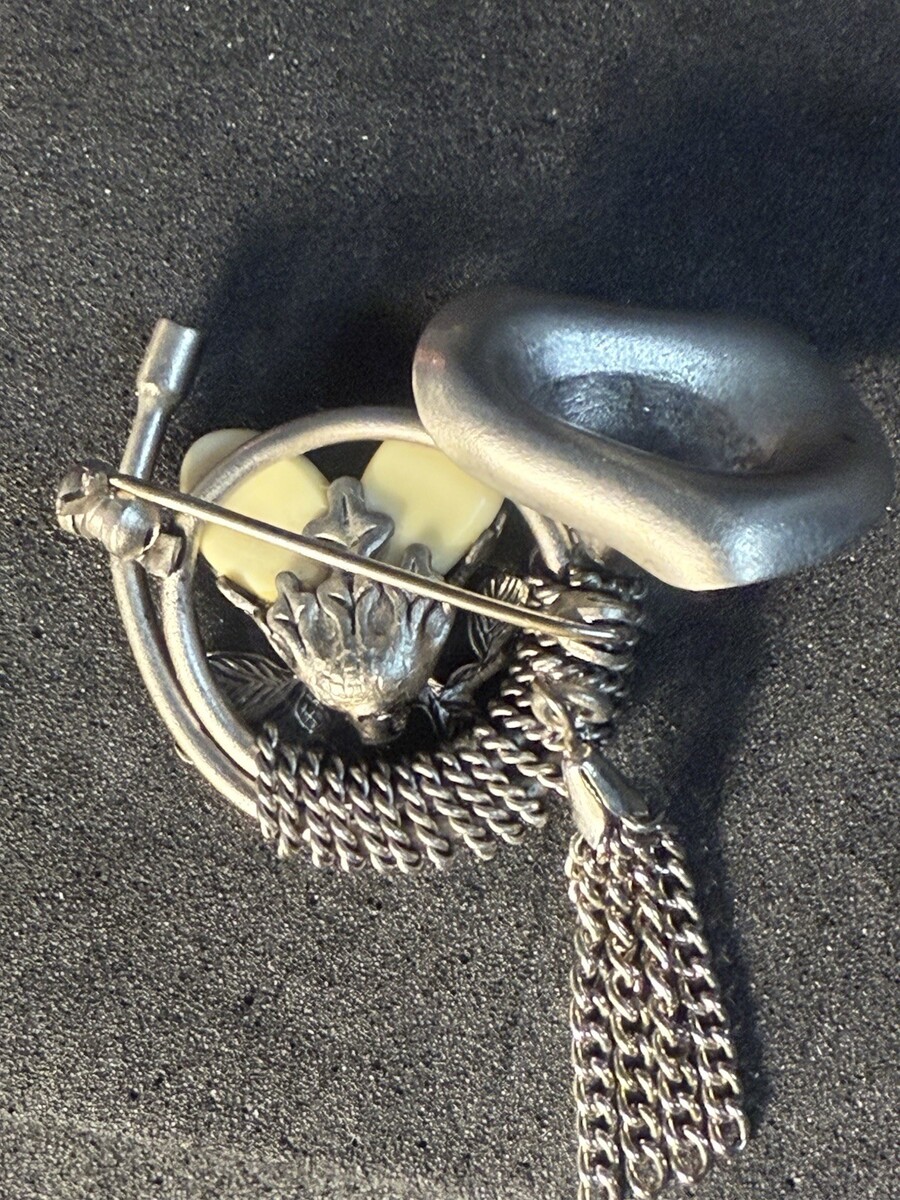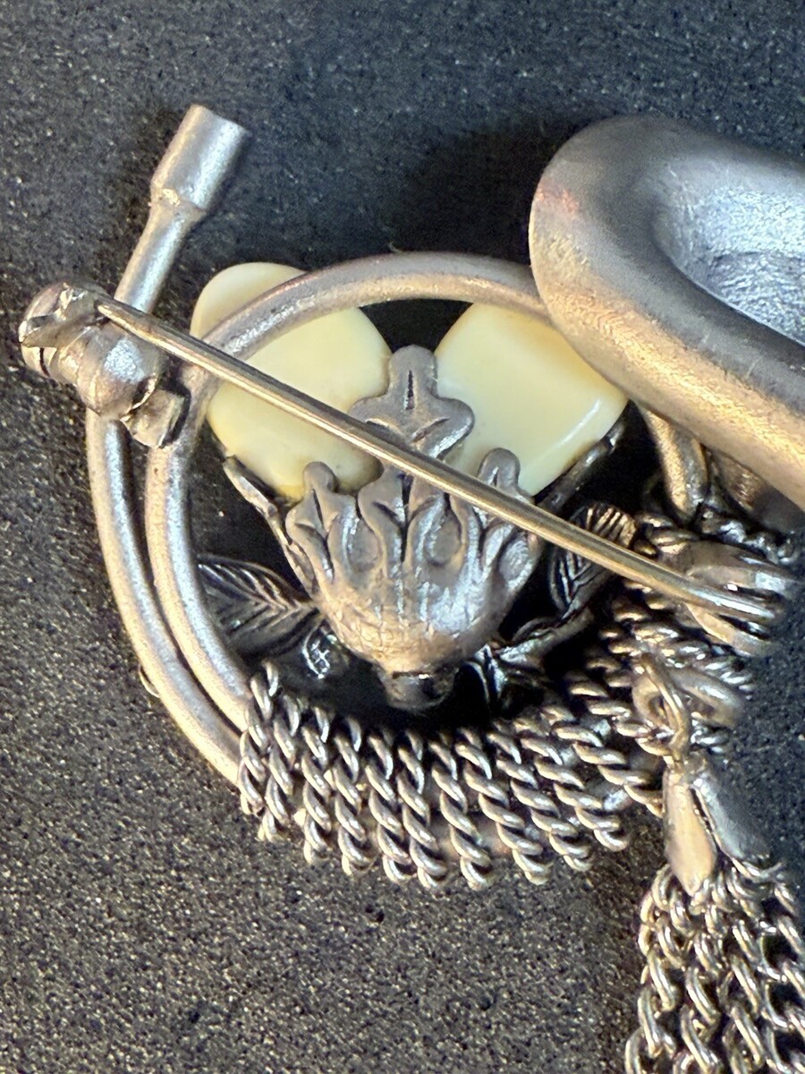 - Antique Hunting Horn Brooch Pin with Grandl And Oak Leaf 835 German Silver