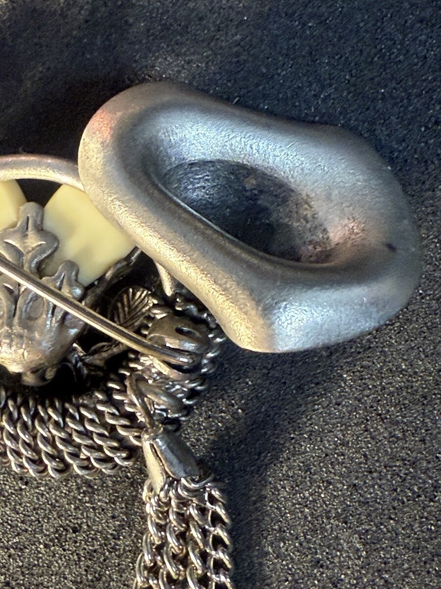 Antique Hunting Horn Brooch Pin with Grandl And Oak Leaf 835 German Silver