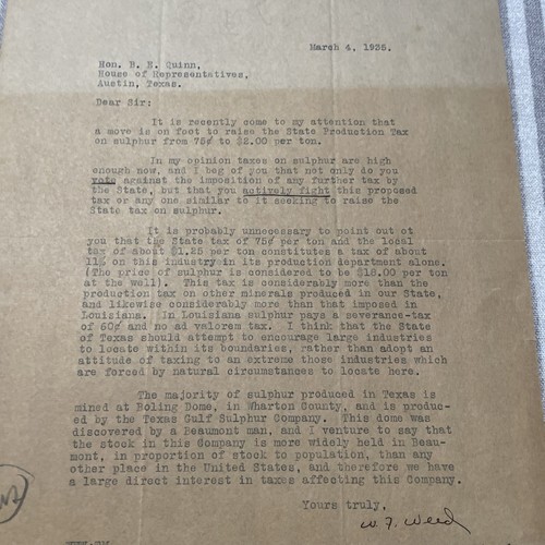 - Antique Letter 1935 Beaumont TX sulphur tax