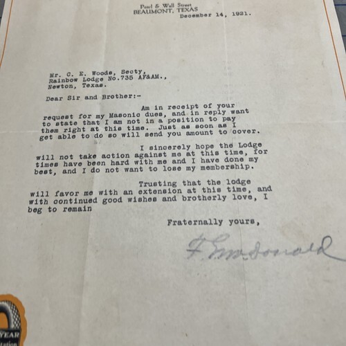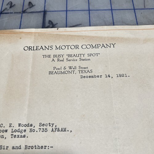 - Antique Letter Orleans Motor Company Beaumont Texas 1921