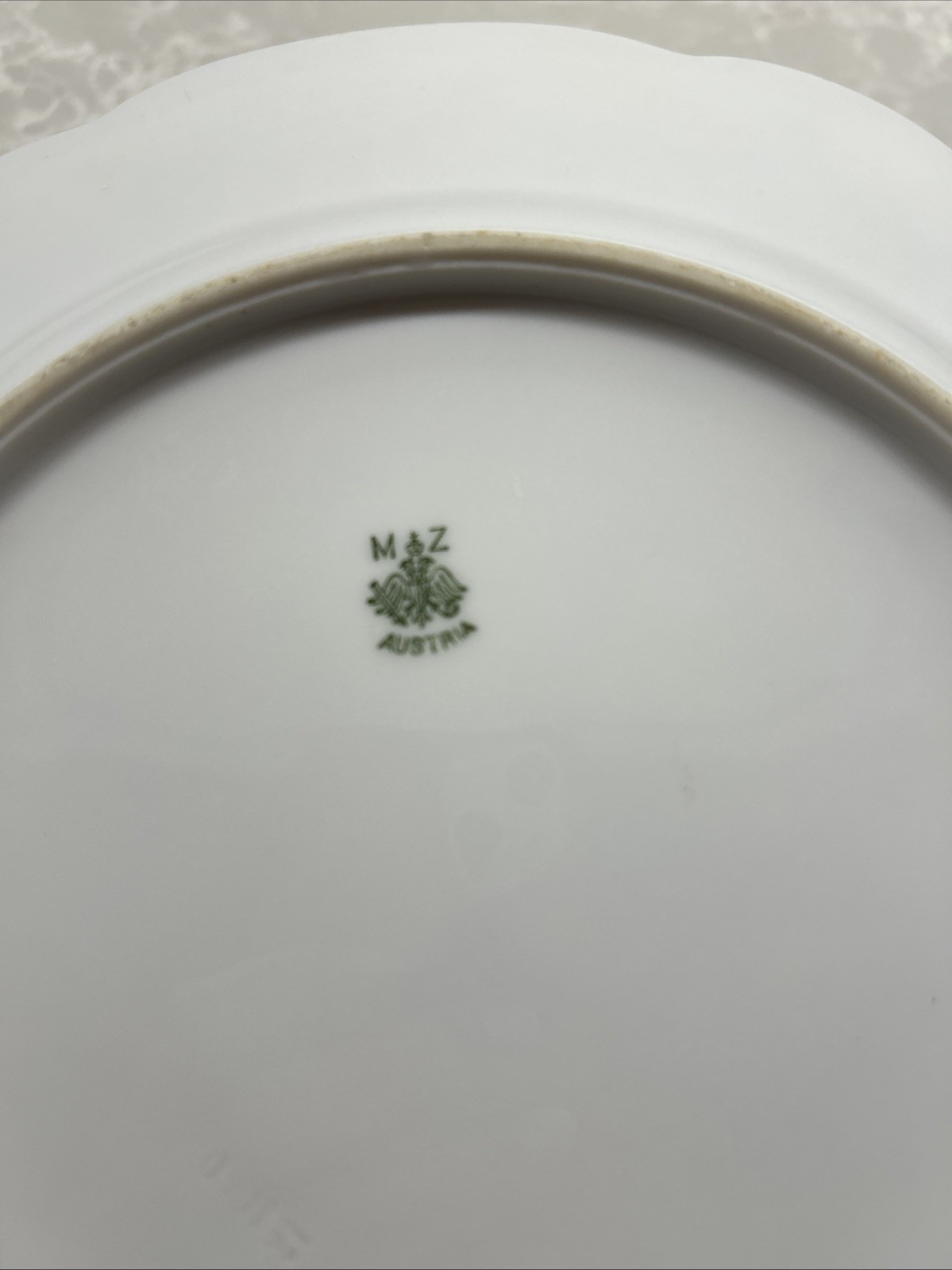 - Antique MZ Austria Porcelain Pink Roses Gold Gilt Plate 8 M