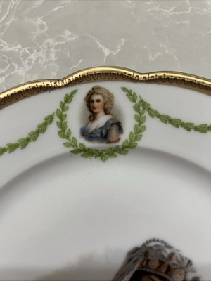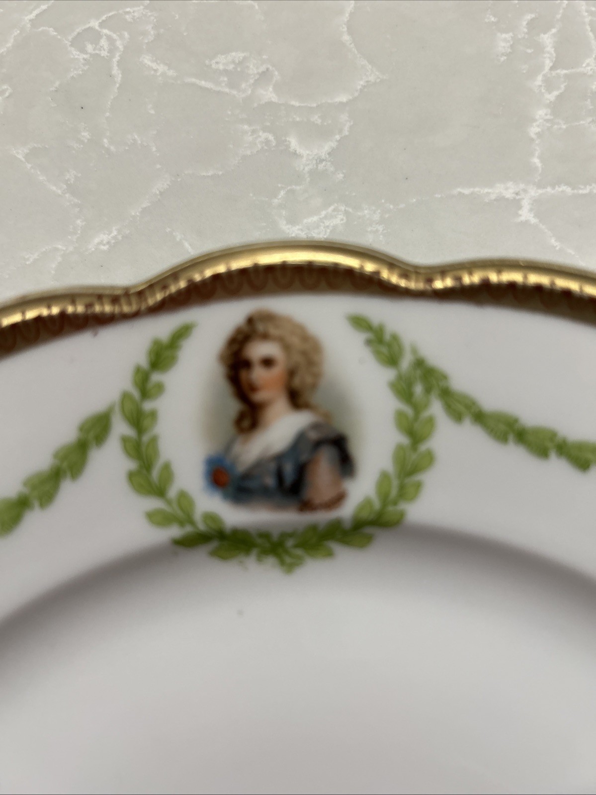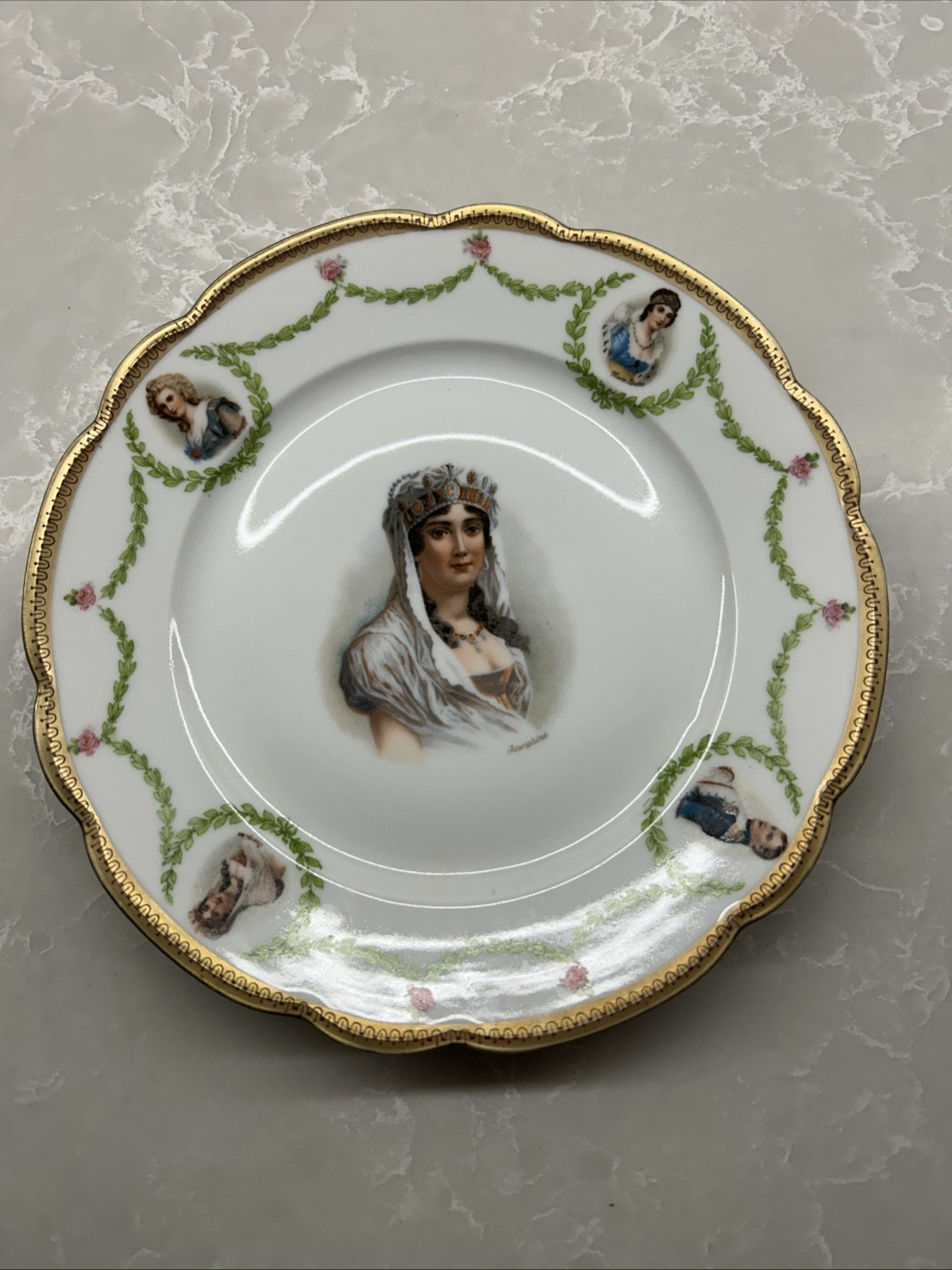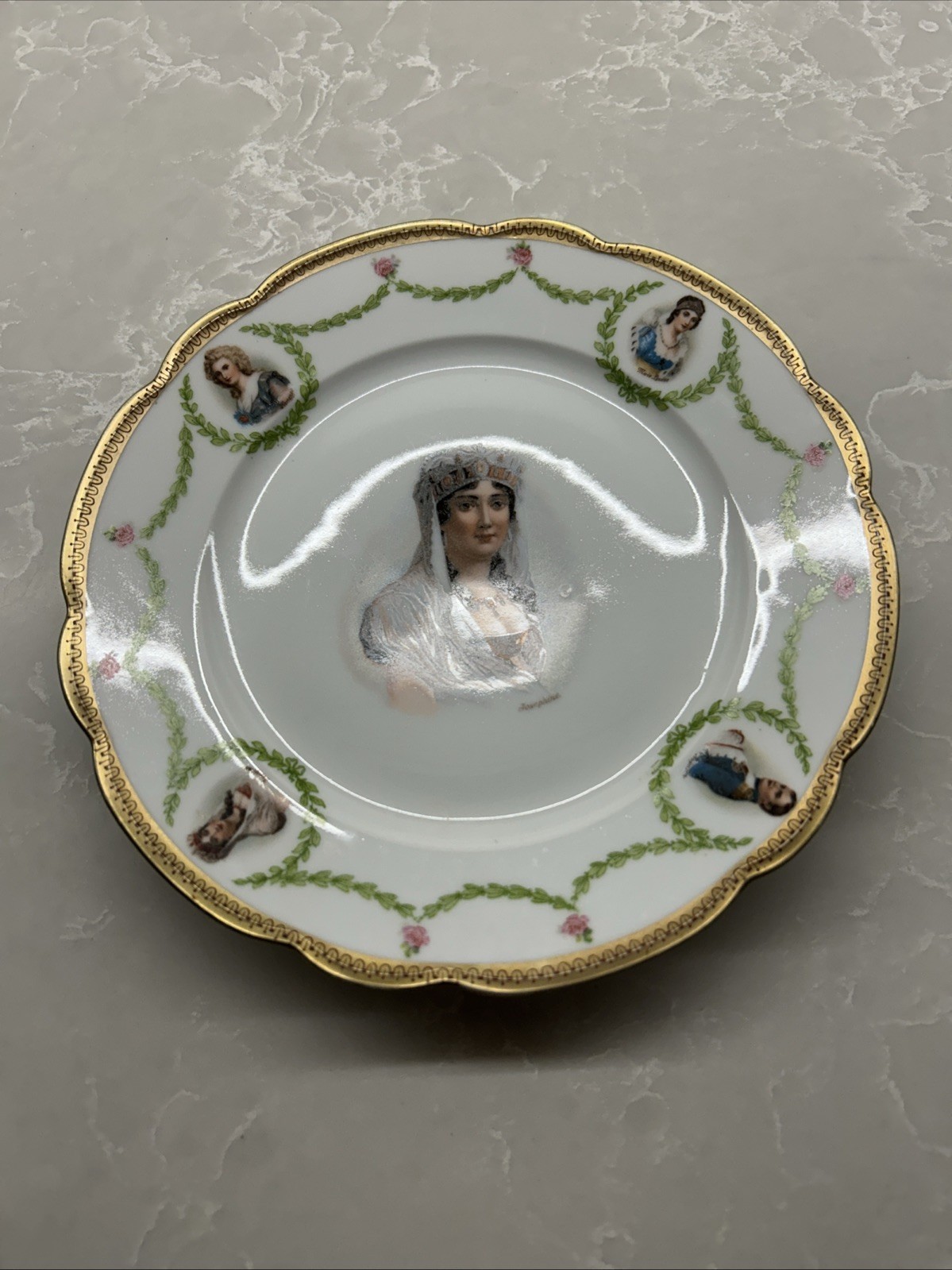 This antique MZ Austria porcelain plate features a beautifully painted design of a Larger painted woman in the middle surrounded by other women and a man exuding a Victorian style elegance. Made in Austria, the plate adds a touch of charm and history to any table setting. Crafted from high-quality porcelain and bone china, this vintage piece is an original antique that showcases intricate detail and timeless beauty. Perfect for collectors of fine porcelain or those looking to enhance their home decor with a touch of vintage sophistication.
