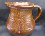 Antique Majolica Pottery tankard Pitcher Jug Tan Glaze Rose Flower 8 1/2 x 8"