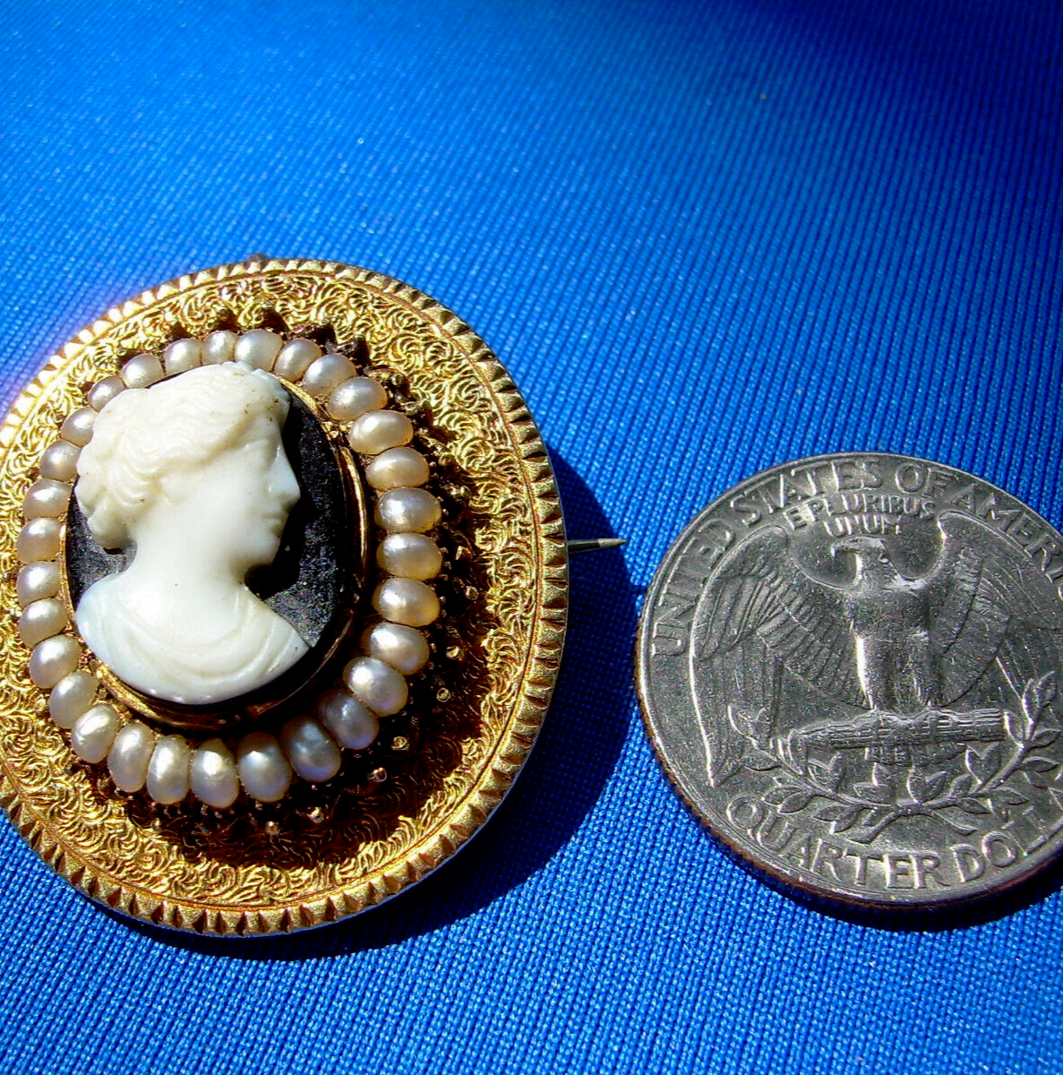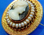 Antique Memento mori Brooch Victorian 14k Gold Deco Pendant Onyx Cameo Pearls