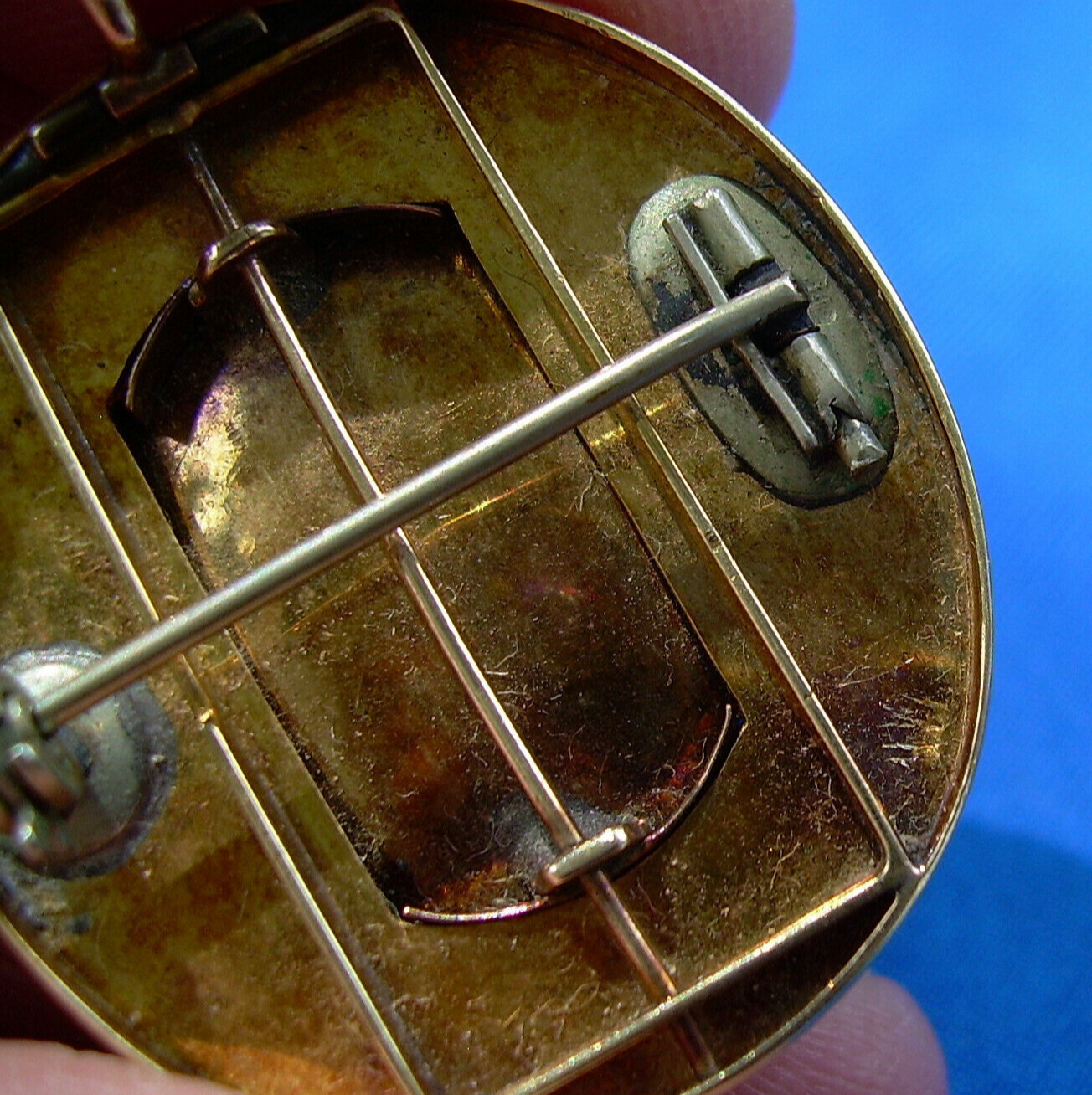 EXTREMELY RARE ANTIQUE 14K GOLD HARD STONE BROOCH.