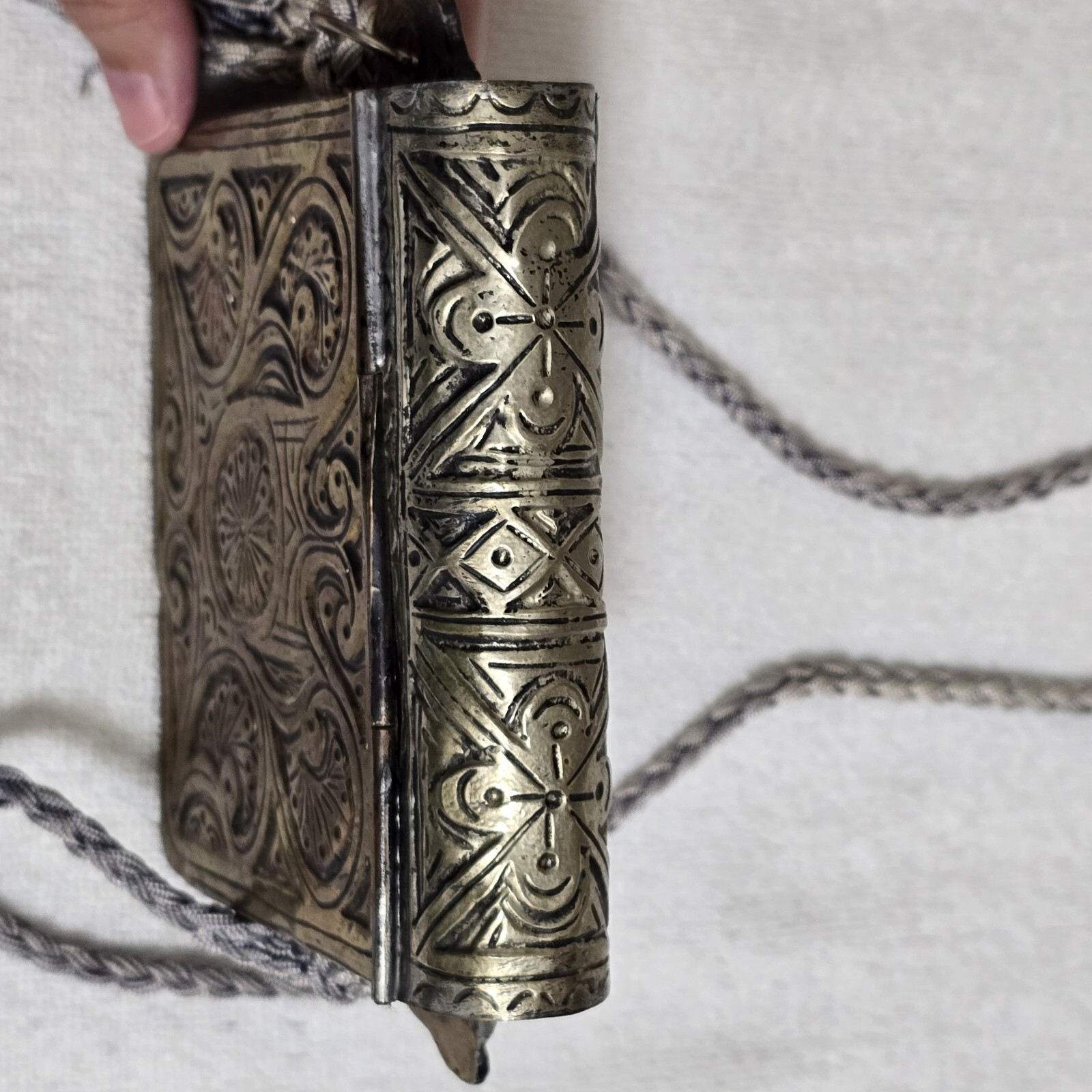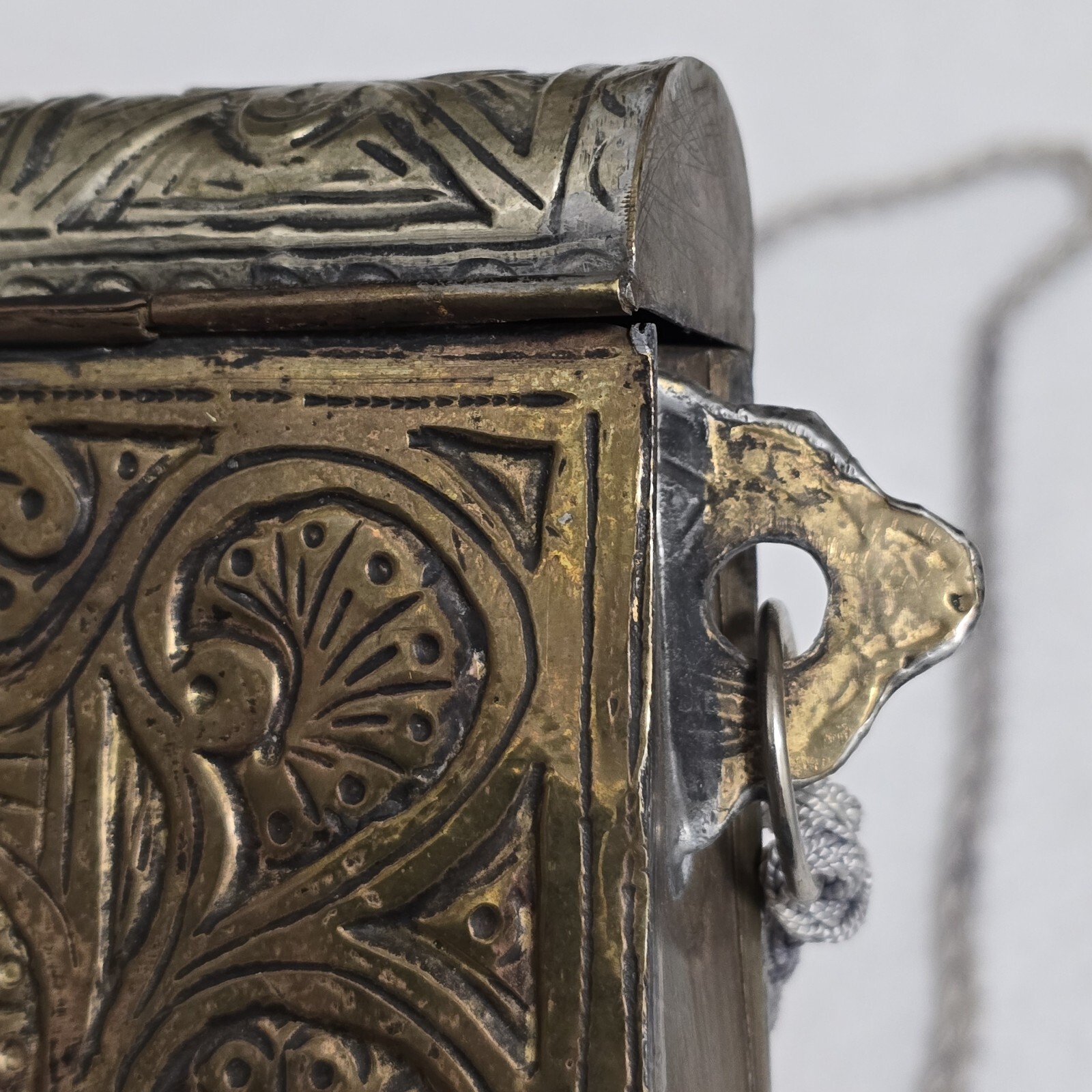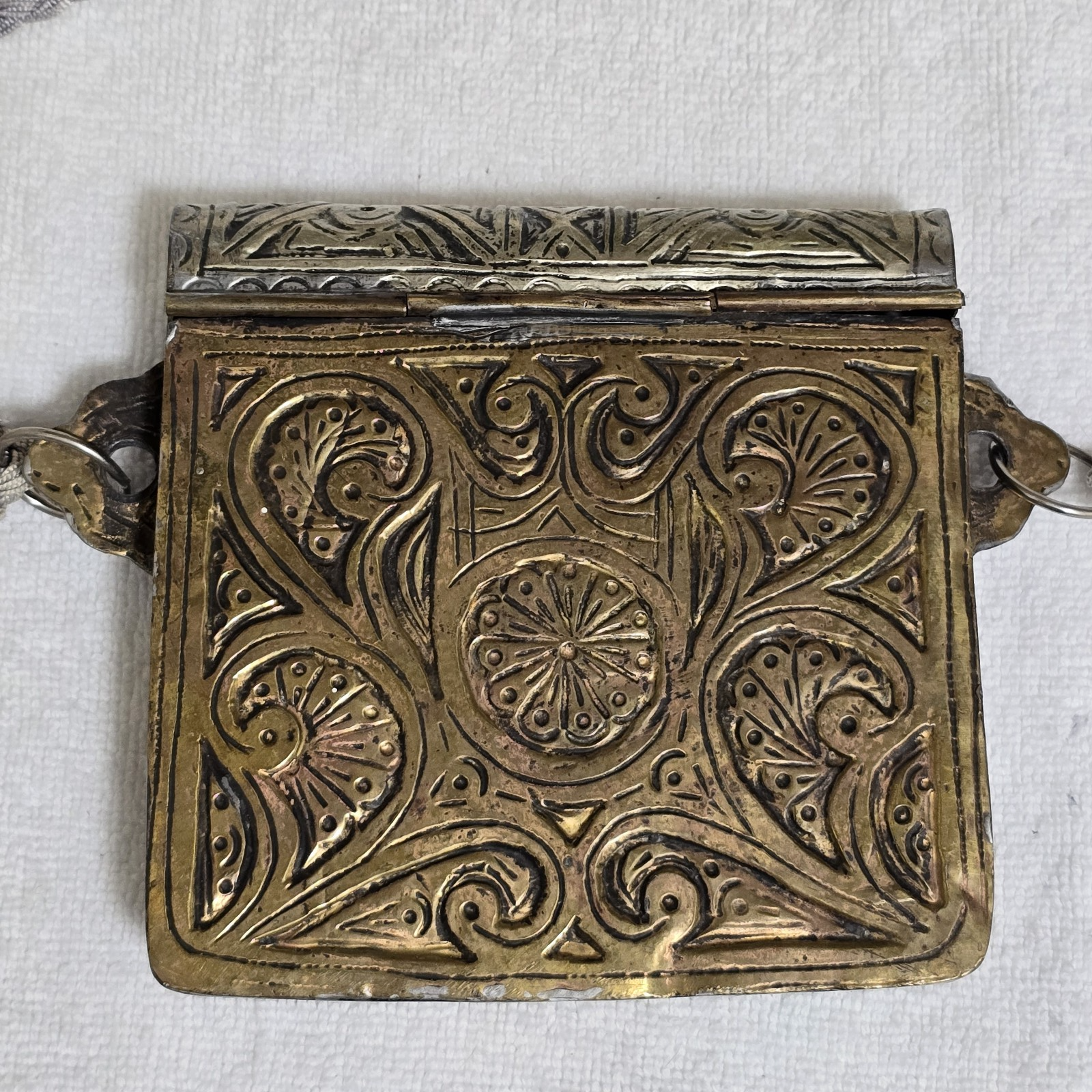 - Antique Moroccan Arabic Brass Copper Ornate Quran Prayer Amulet Box Holder 4.75"