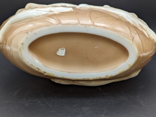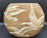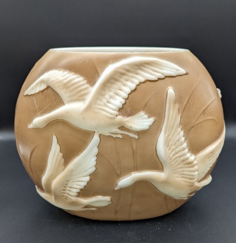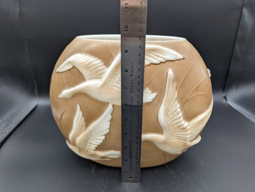 - Antique Phoenix Glass Pillow Vase Cream White 3D Geese Swans Flying
