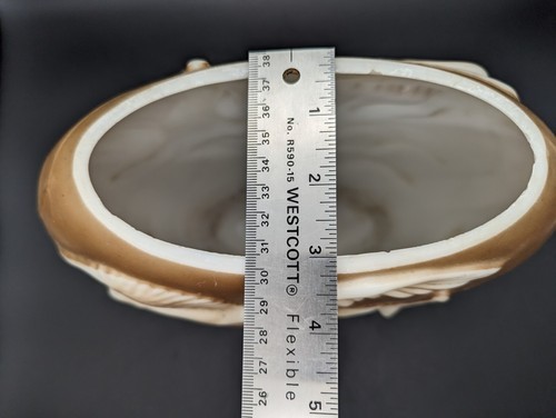 The vase measures X inches in height and is in excellent shape with no visible signs of wear. It would make a lovely addition to any collection of art deco or vintage glassware. The Phoenix Glass Pillow Vase Cream White Geese Swans Flying High Relief is a rare find that would be a great conversation starter in any room.