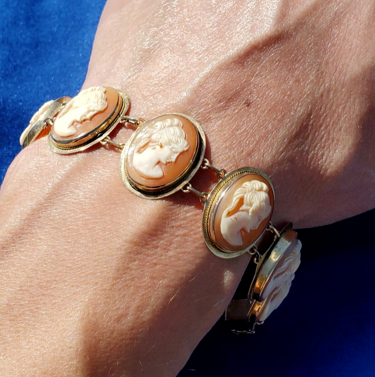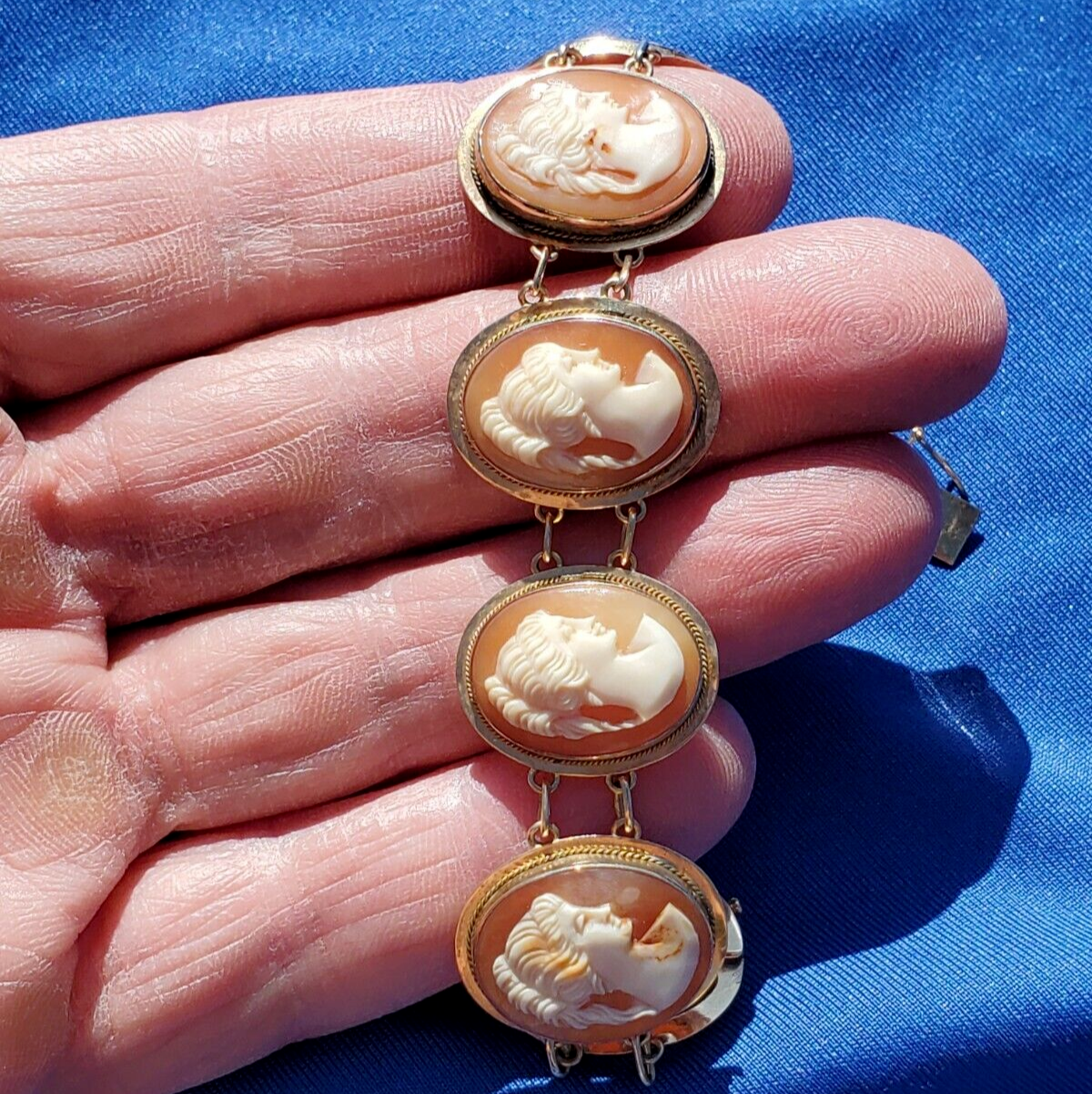 - Antique Pictorial Cameo Solid 14k Rose Gold Panel Victorian Bracelet 7.5" inch